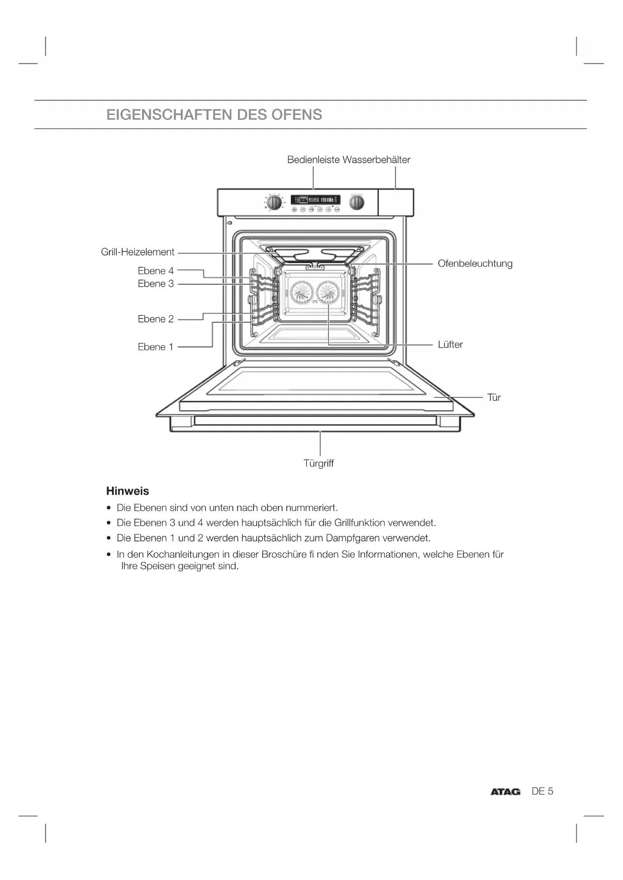 Vielen Dank für den Erwerb dieses Kombi-Dampfgarofens von ATAG. Ihre Benutzeranleitung enthält wichtige Informationen zur Verwendung und Pfl ege Ihres neuen Kombi-Dampfgarofens. Die Installationsanweisungen sind separat mitgeliefert. Lesen Sie sich vor dem Gebrauch Ihres Kombi-Dampfgarofens die Sicherheitshinweise und alle Informationen in dieser Bedienungsanleitung durch und bewahren Sie diese zur Konsultation bei später auftretenden Fragen auf. OFEN Sicherer Gebrauch