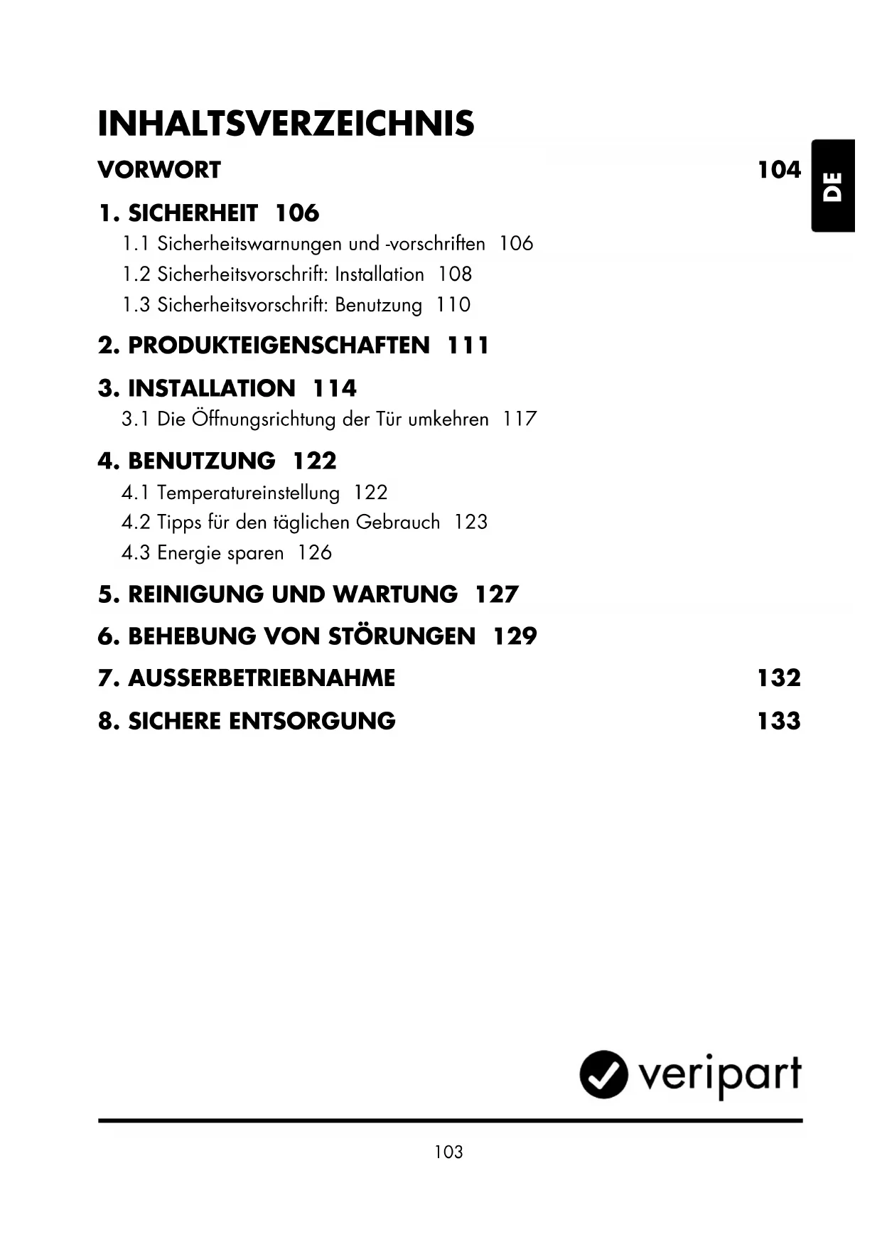 Laden Sie die Anleitung für Ihr Kühlschrank kostenlos im PDF-Format! Finden Sie Ihr Handbuch VPKVC176W - Veripart und nehmen Sie Ihr elektronisches Gerät wieder in die Hand. Auf dieser Seite sind alle Dokumente veröffentlicht, die für die Verwendung Ihres Geräts notwendig sind. VPKVC176W von der Marke Veripart.