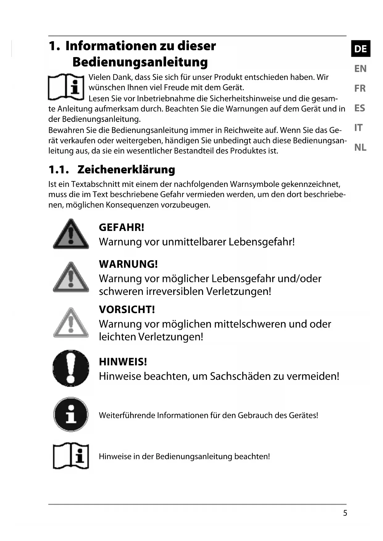 1. Informationen zu dieser Bedienungsanleitung ........................................ 5