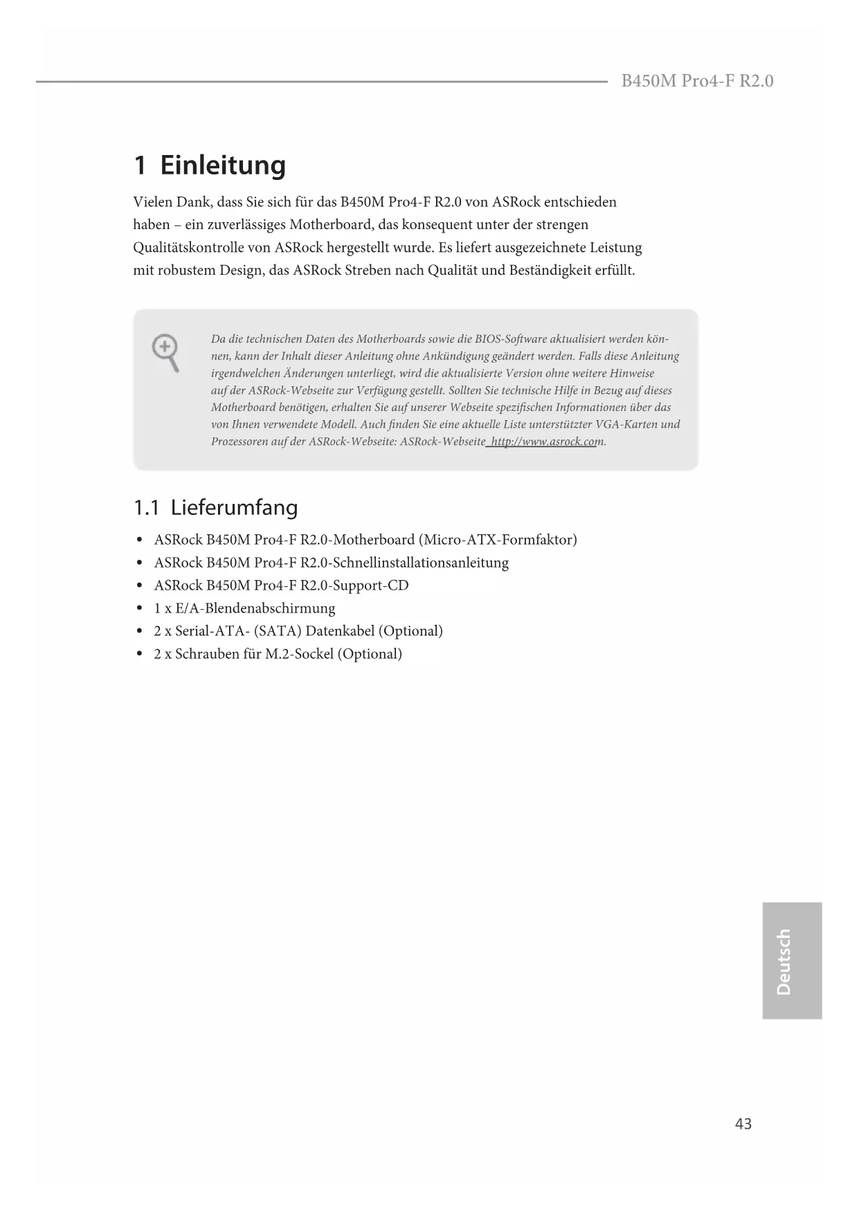 BEDIENUNGSANLEITUNG B450M Pro4F R2.0 ASROCK