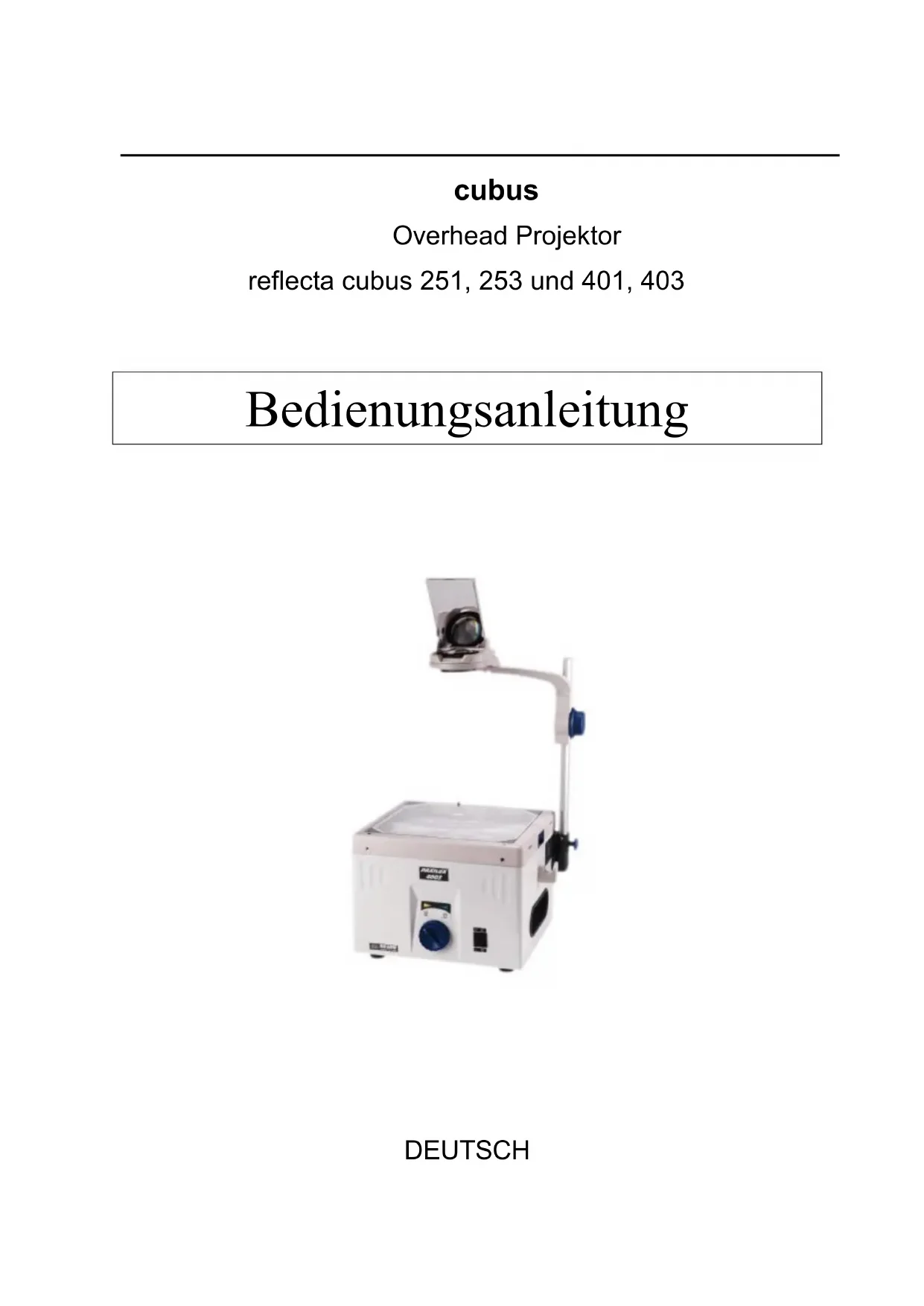 DEUTSCHOverhead Projektor reflecta cubus 251, 253 und 401, 403 Bedienungsanleitung Wichtige Sicherheitshinweise 1