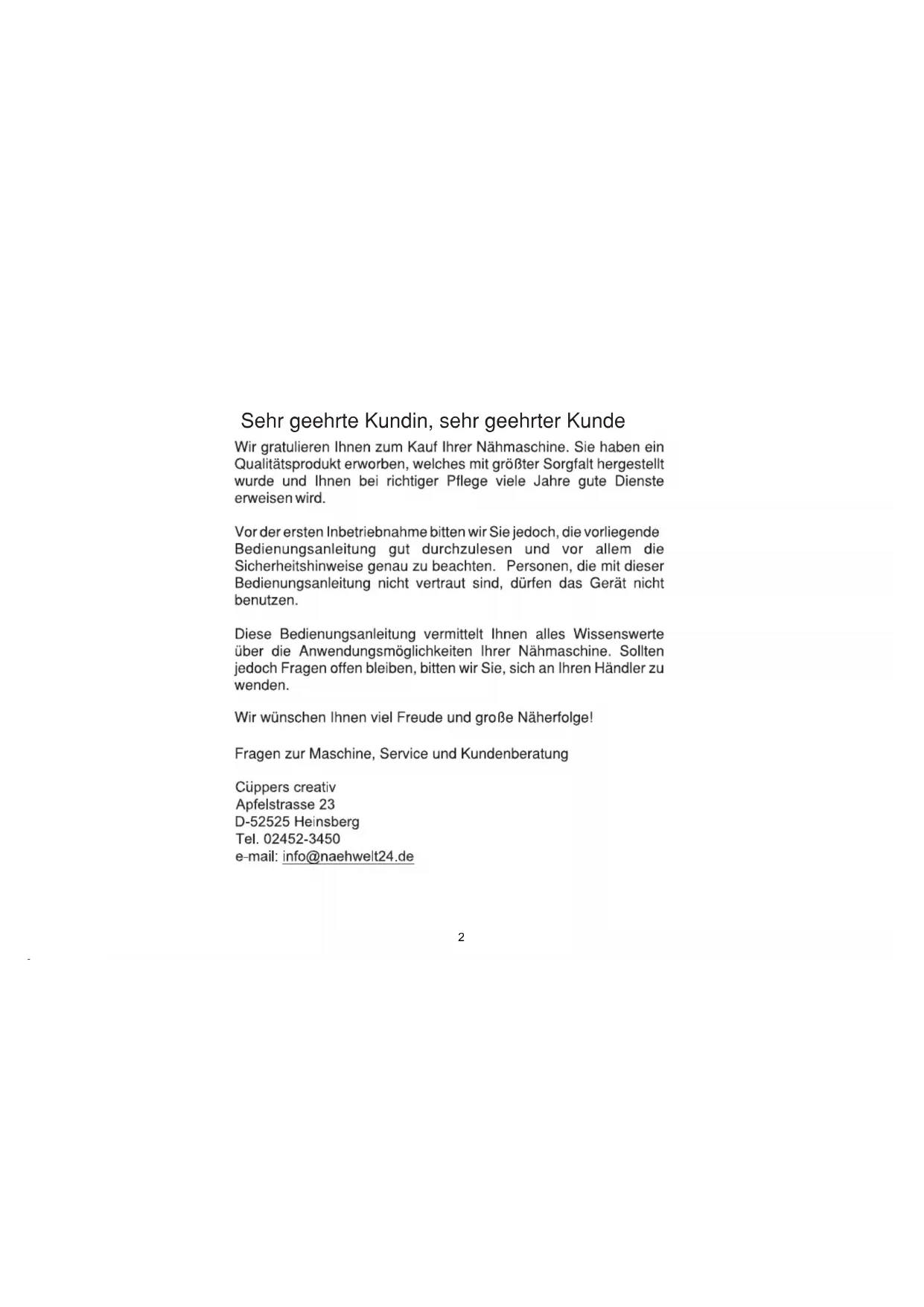 Diese Nähmaschine ist nur für den Hausgebrauch gedacht.