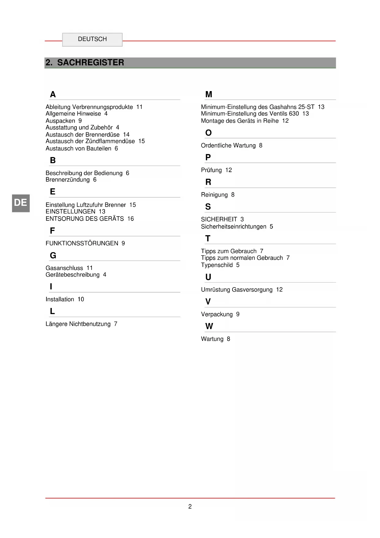 Ableitung Verbrennungsprodukte 11 Allgemeine Hinweise 4 Auspacken 9 Ausstattung und Zubehör 4 Austausch der Brennerdüse 14 Austausch der Zündflammendüse 15 Austausch von Bauteilen 6