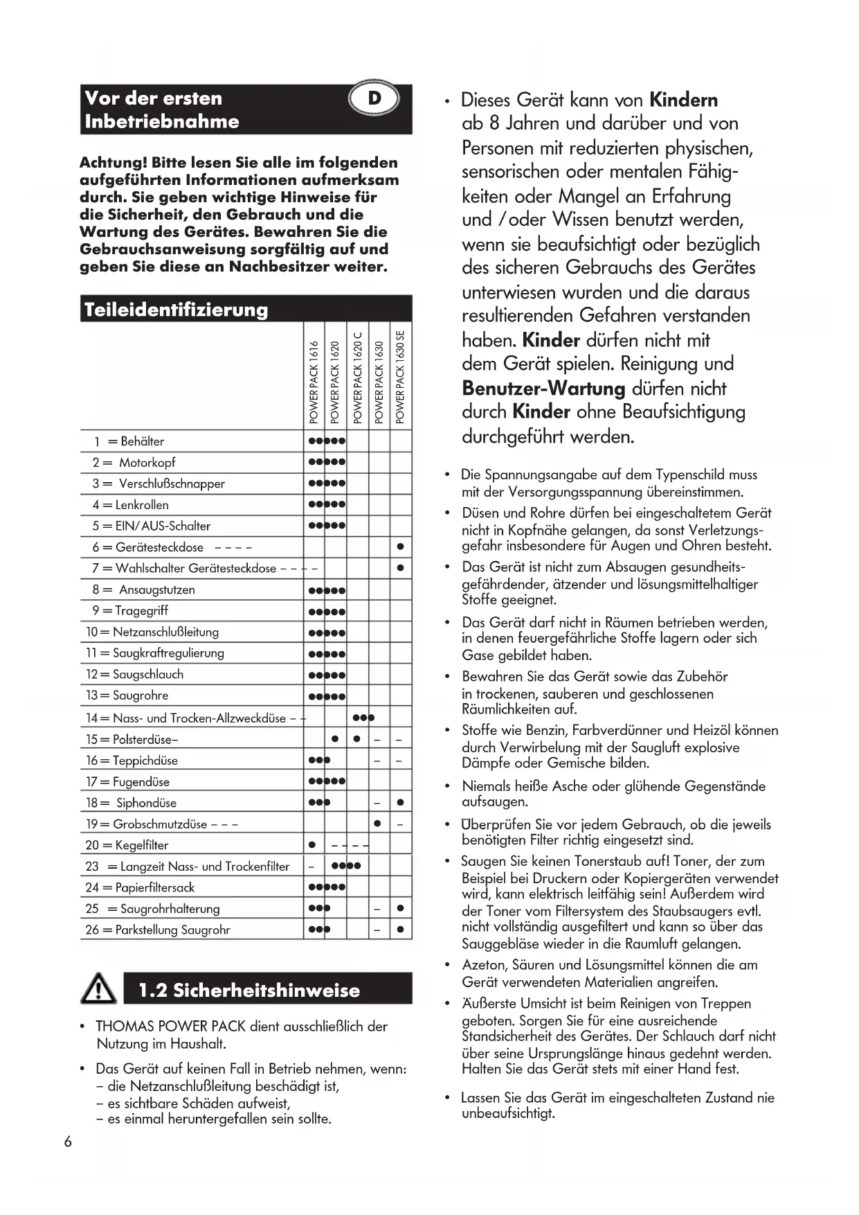 - THOMAS POWER PACK dient ausschlieBlich der Nutzung im Haushalt.