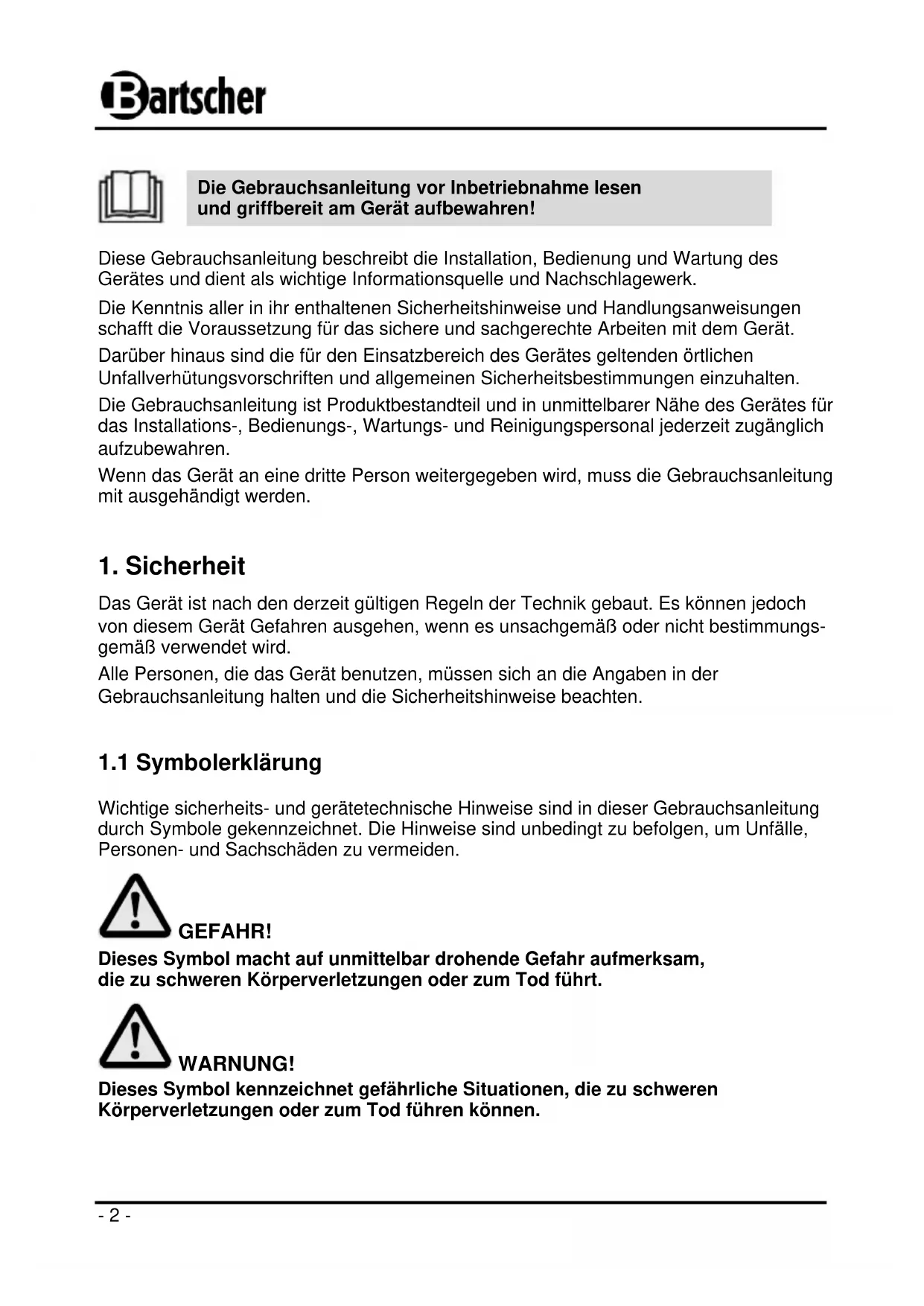 Die Gebrauchsanleitung vor Inbetriebnahme lesen und griffbereit am Gerät aufbewahren!