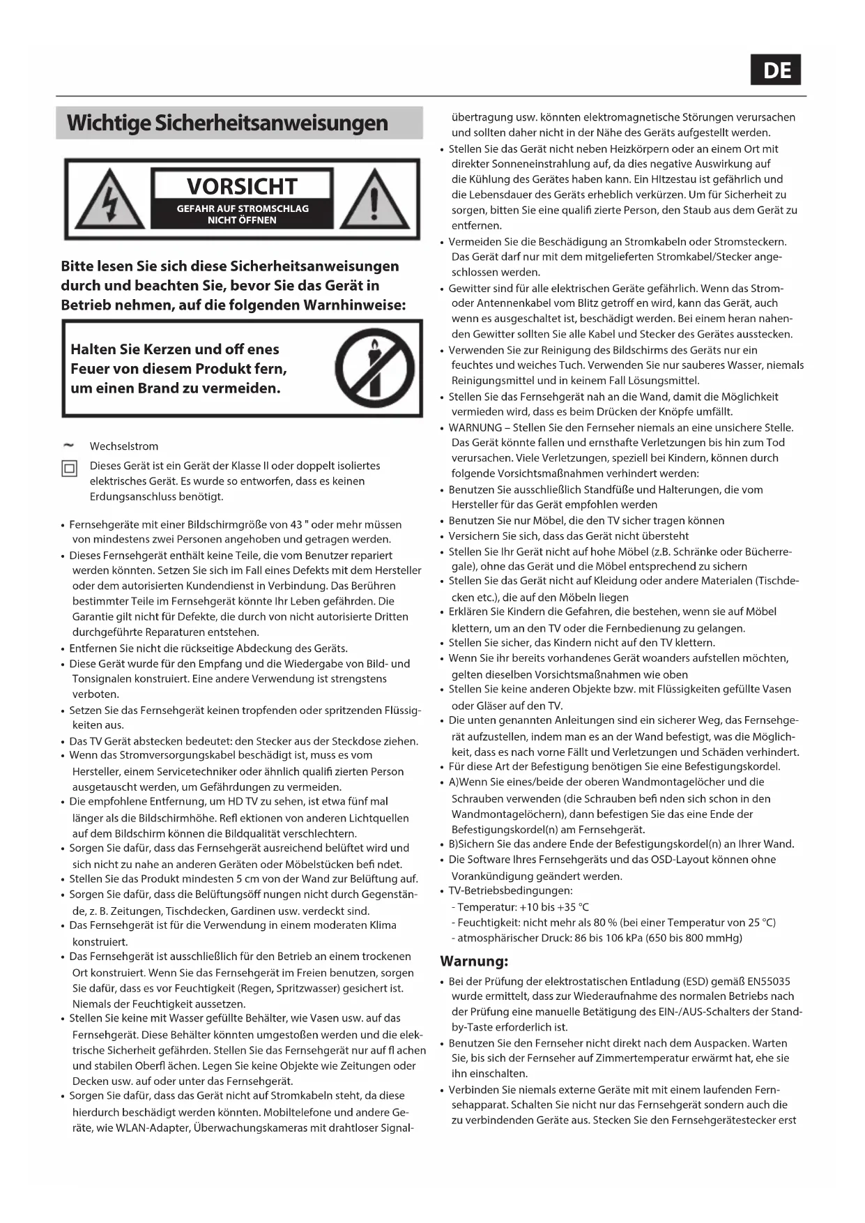 - Das Fernsehgerät ist für die Verwendung in einem moderaten Klima konstruiert.