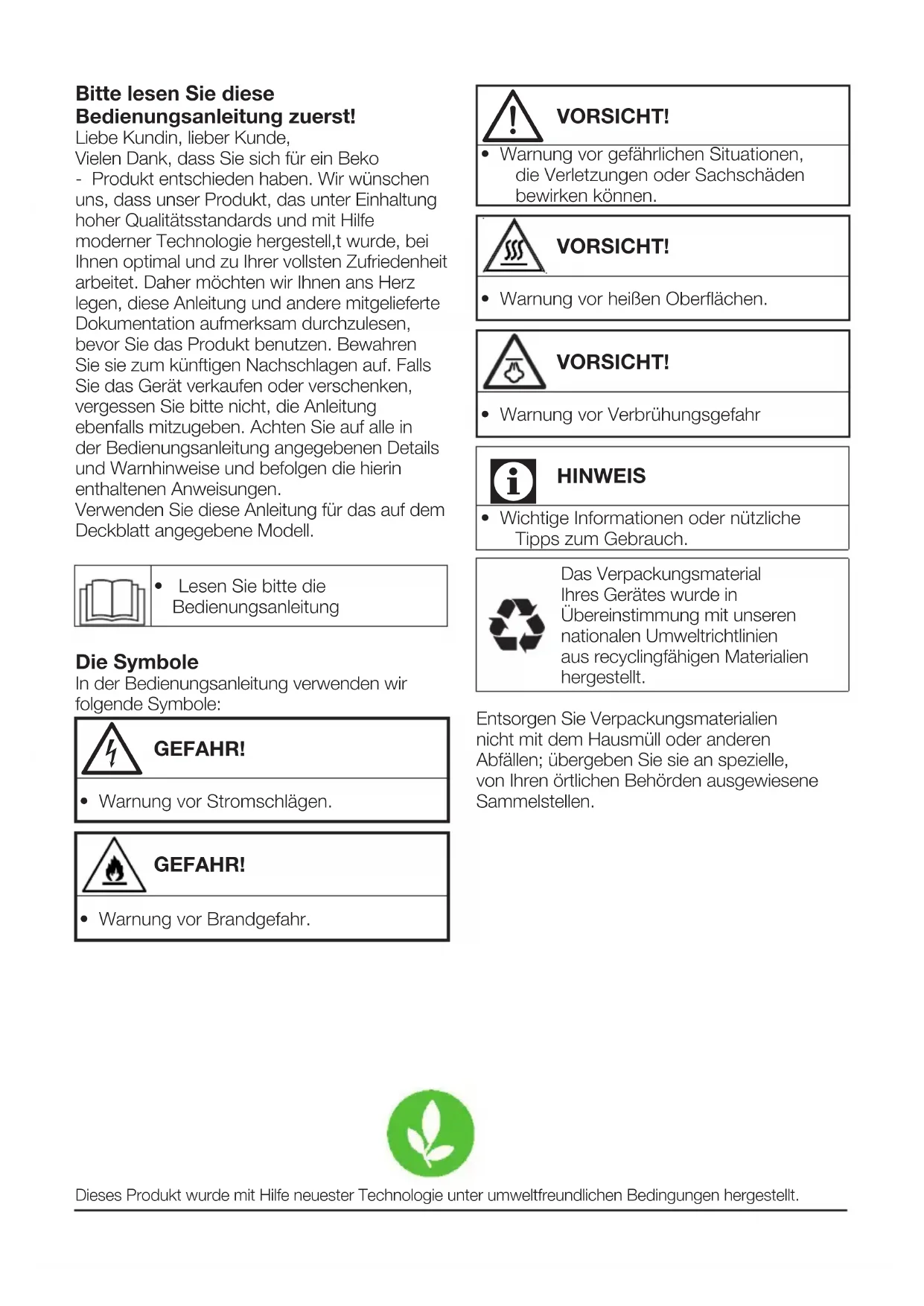 - Warnung vor Brandgefahr. Dieses Produkt wurde mit Hilfe neuester Technologie unter umweltfreundlichen Bedingungen hergestellt.