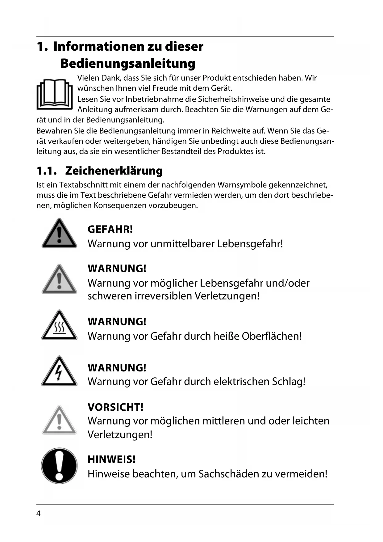 1. Informationen zu dieser Bedienungsanleitung ........................................ 4