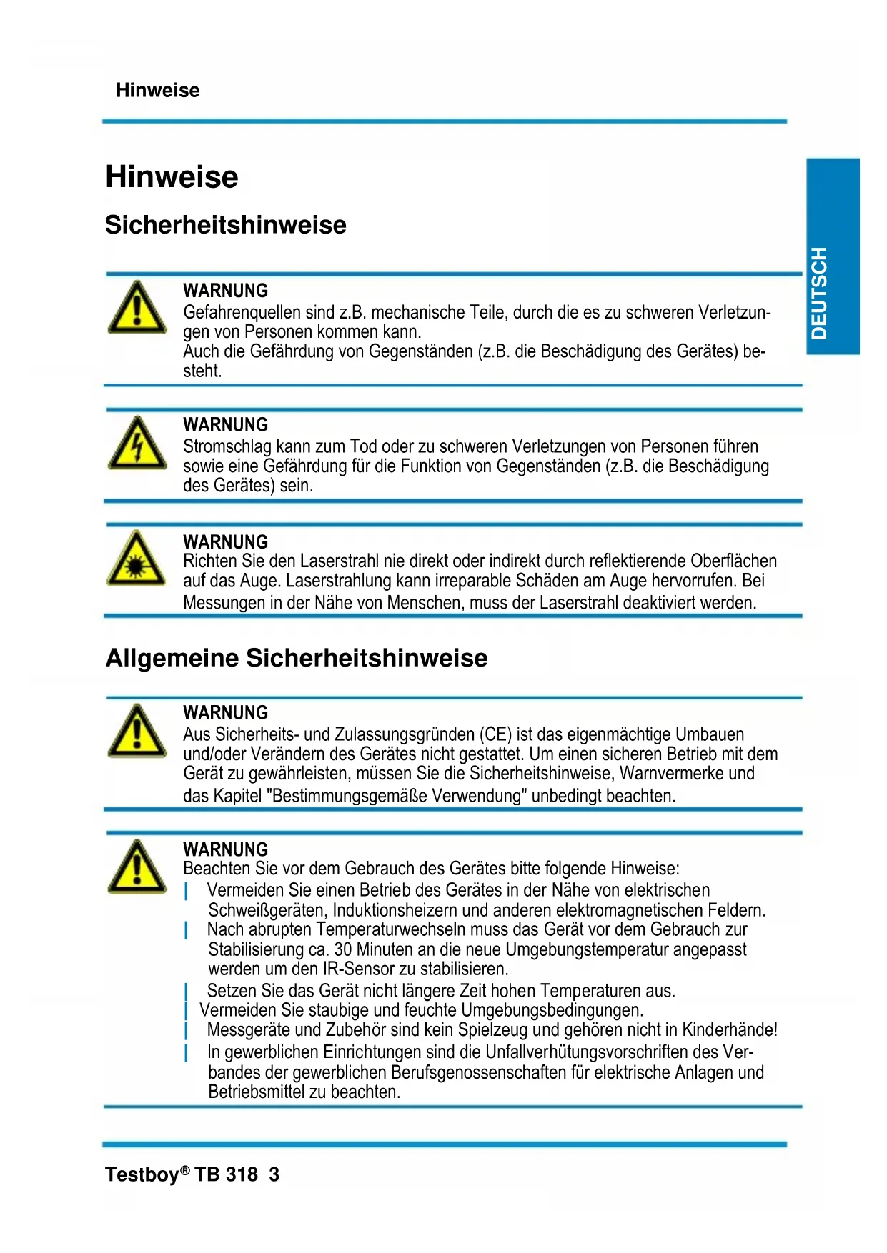 Das TB 318 hat das Werk in sicherheitsstechnisch einwandfreiem Zustand verlassen. Um diesen Zustand zu erhalten, muss der Anwender die Sicherheitshinweise in dieser Anleitung beachteten.