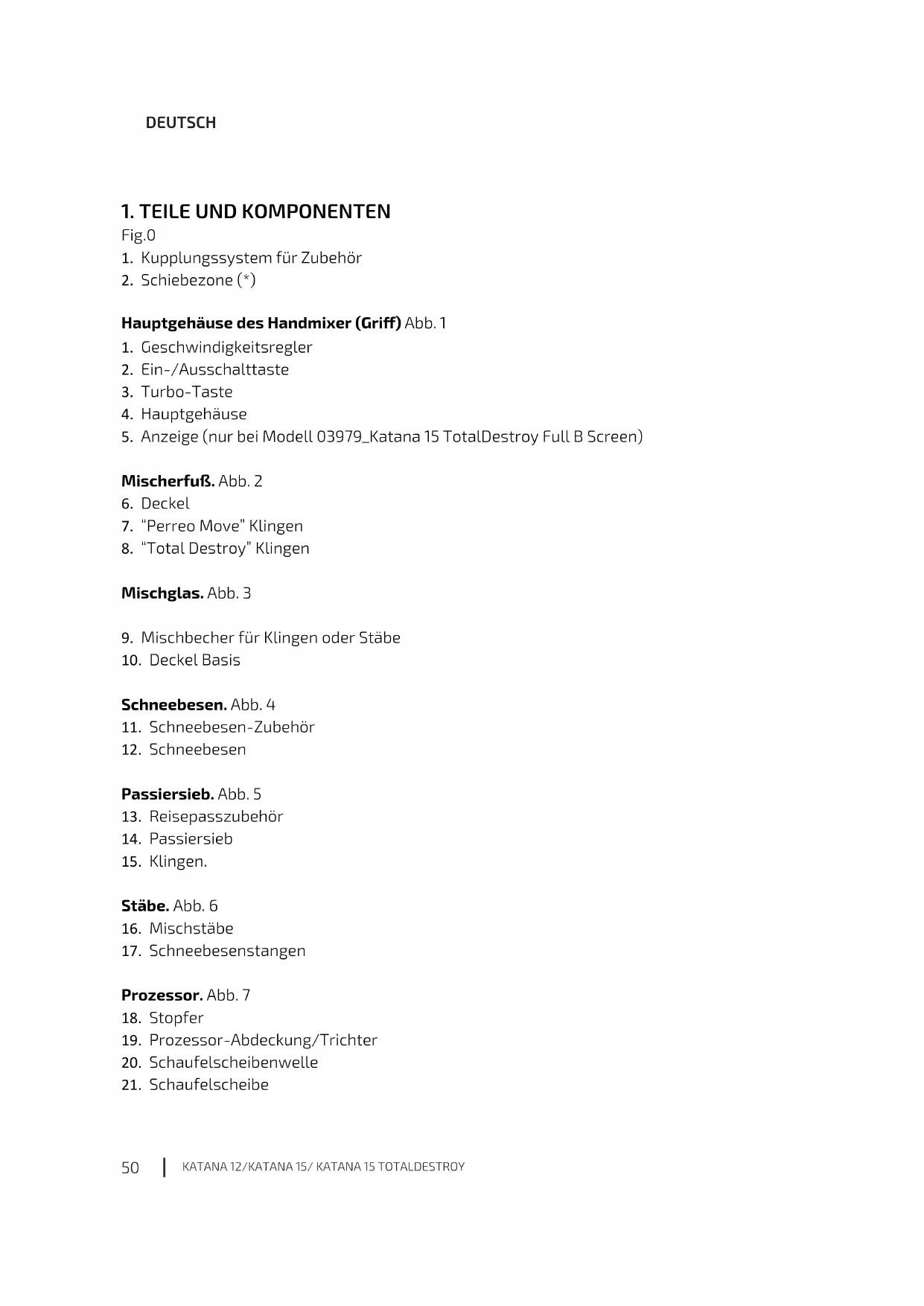 DEUTSCH Mixer Katana 12/15 Chop B/G - Mixerfuß mit “Perreo Move”-Technologie - Mischbecher mit rutschfestem Deckel-Boden - Schneebesen - Chopper Mixer Katana 12/15 Smash B - Mixerfuß mit “Perreo Move”-Technologie - Mischbecher mit rutschfestem Deckel-Boden - Schneebesen - Schneebesenstangen - Chopper - Passiersieb Mixer Katana 15 TotalDestroy Jar B/G - Mixerfuß mit “Perreo Move” und “TotalDestroy” Technologie - Mischbecher mit rutschfestem Deckel-Boden Mixer Katana 15 TotalDestroy Cream B - Mixerfuß mit “Perreo Move” und “TotalDestroy” Technologie - Mischbecher mit rutschfestem Deckel-Boden - Schneebesen Mixer Katana 15 TotalDestroy Chop B - Mixerfuß mit “Perreo Move”-Technologie - Mischbecher mit rutschfestem Deckel-Boden - Schneebesen - Chopper Mixer Katana 15 TotalDestroy Smash B - Mixerfuß mit “Perreo Move” und “TotalDestroy” Technologie - Mischbecher mit rutschfestem Deckel-Boden - Schneebesen - Schneebesenstangen - Chopper - Passiersieb Mixer Katana 15 TotalDestroy Full B/B Screen - Mixerfuß mit “Perreo Move” und “TotalDestroy” Technologie - Mischbecher mit rutschfestem Deckel-BodenKATANA 12/KATANA 15/ KATANA 15 TOTALDESTROY
