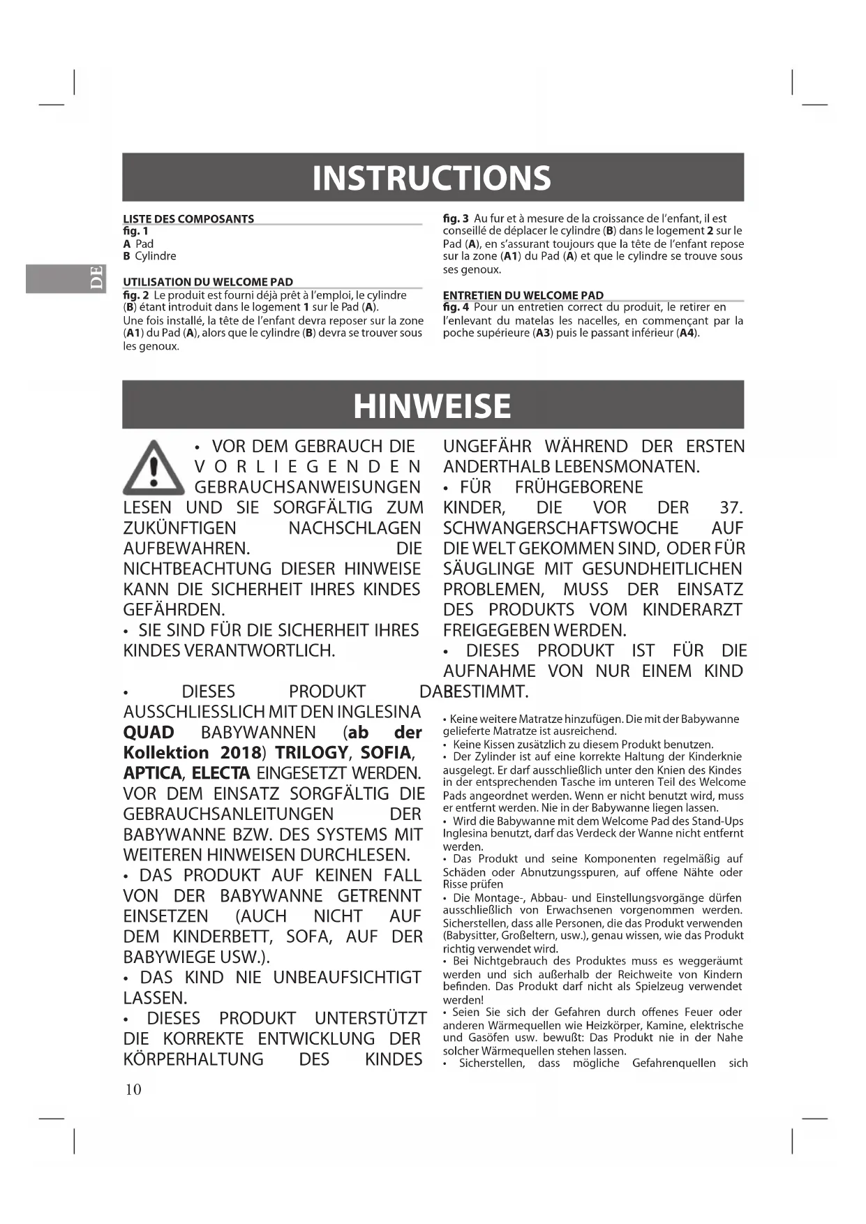 QUAD BABYWANNEN (ab der Kollektion 2018) TRILOGY, SOFIA, APTICA, ELECTA EINGESETZT WERDEN.