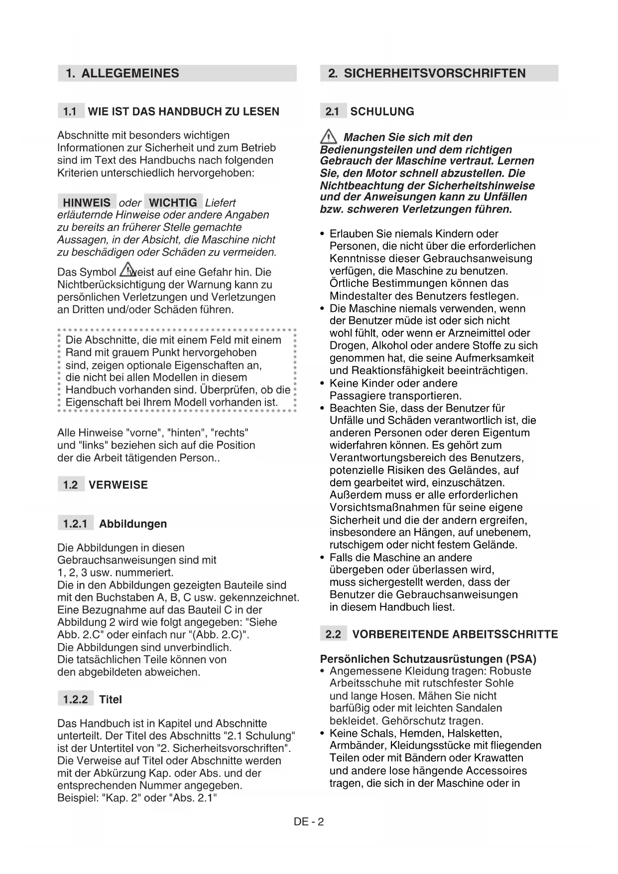 2. SICHERHEITSVORSCHRIFTEN