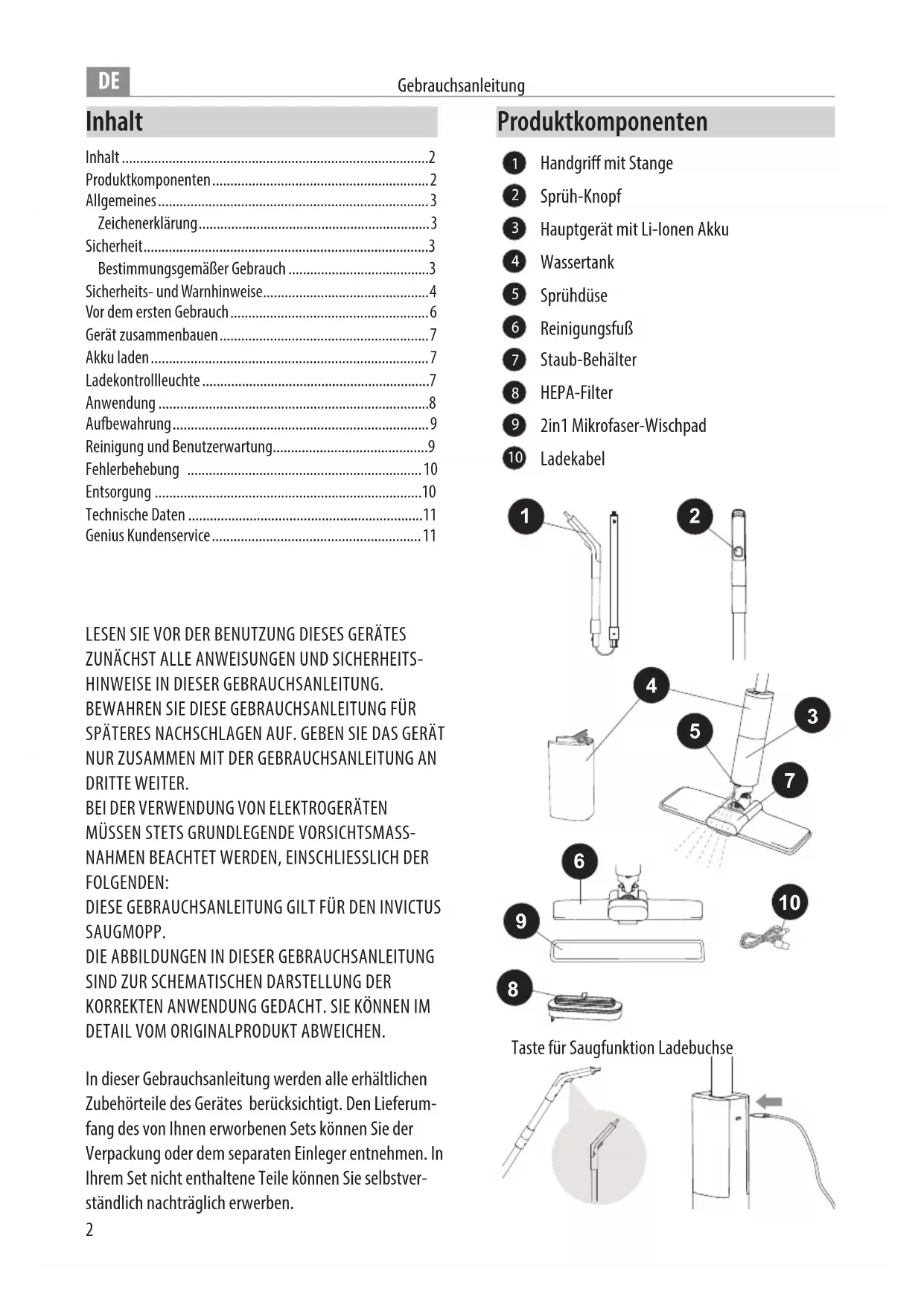 Finden Sie kostenlos die Bedienungsanleitung des Geräts Invictus Saugmopp GENIUS als PDF.