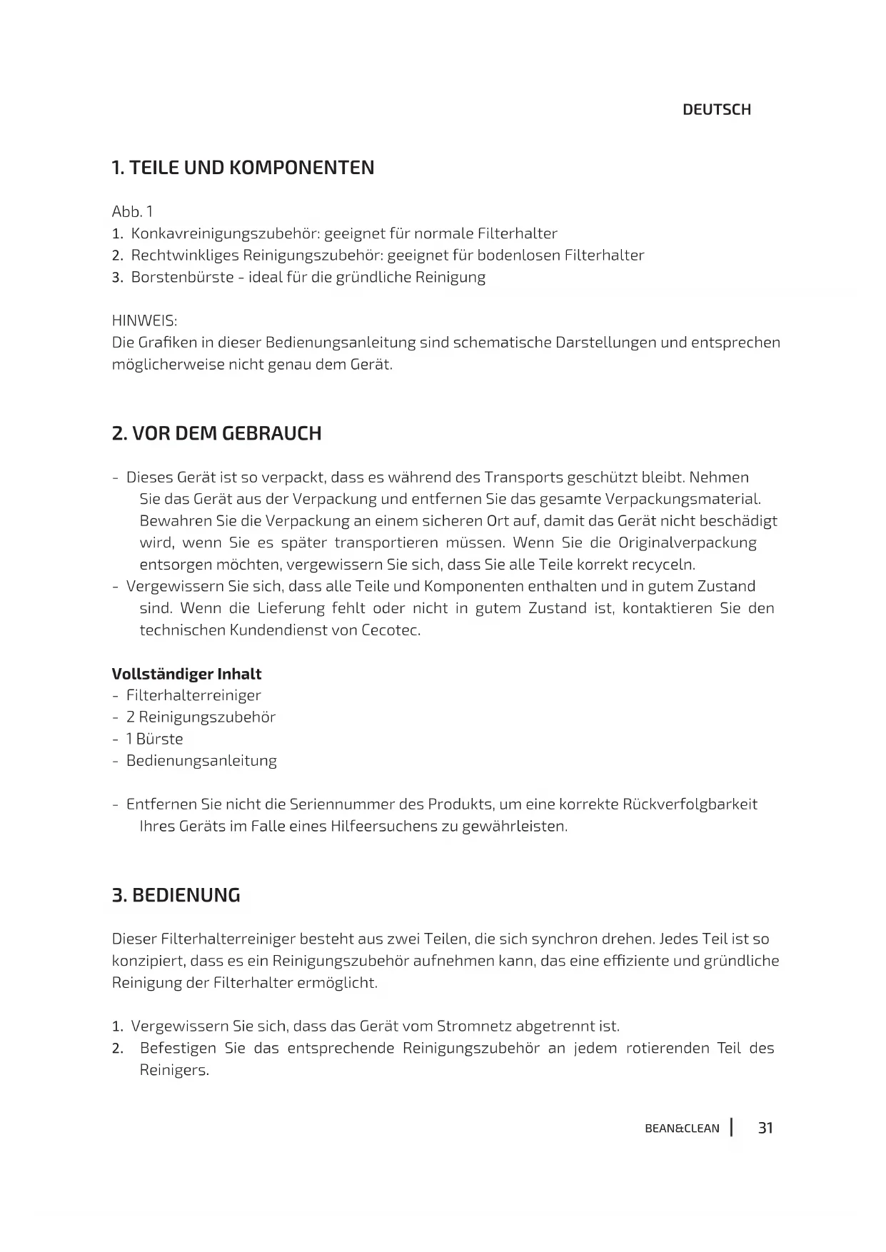 BEDIENUNGSANLEITUNG Bean&Clean CECOTEC
