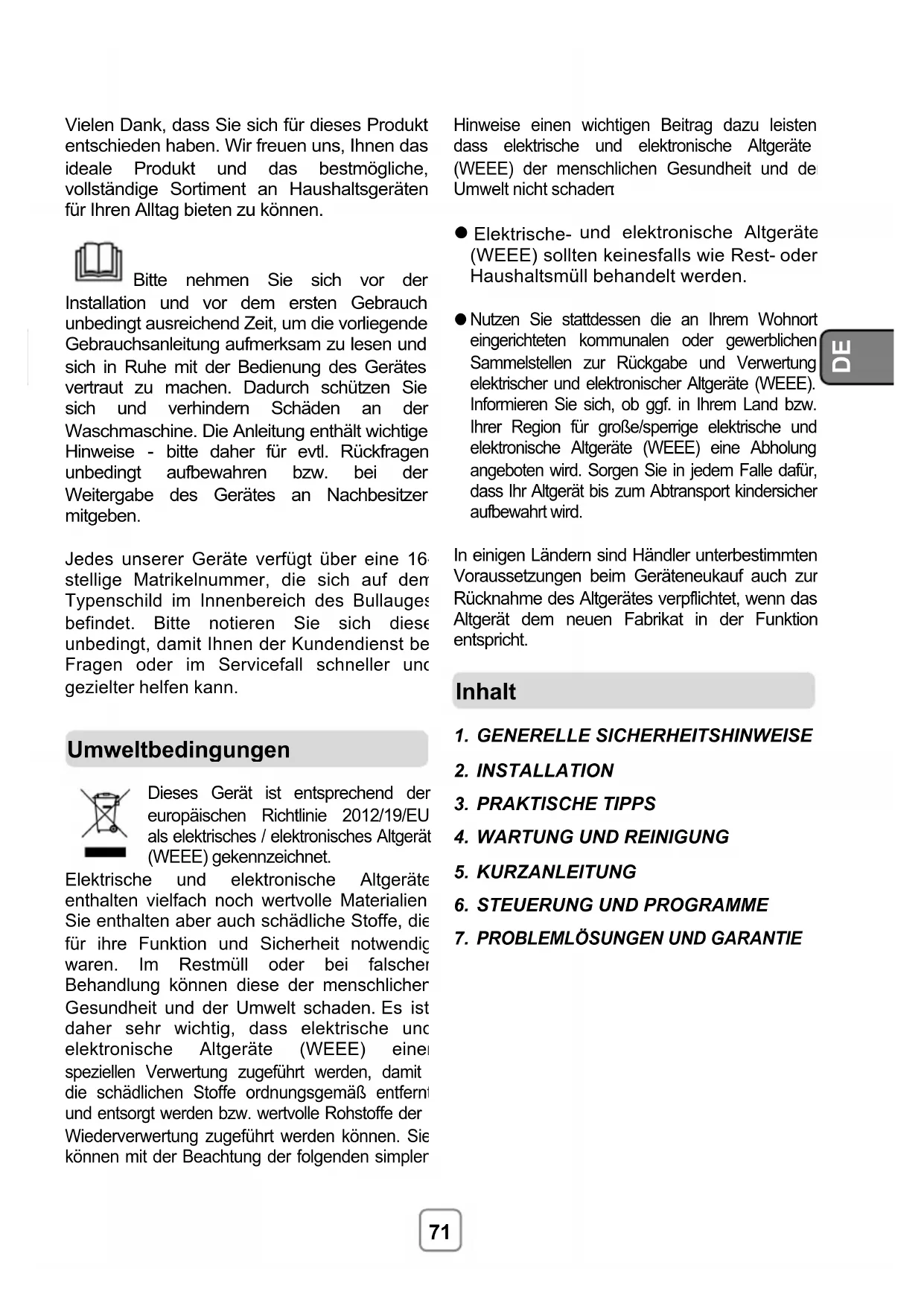 Nutzen Sie stattdessen die an Ihrem Wohnort eingerichteten kommunalen oder gewerblichen Sammelstellen zur Rückgabe und Verwertung elektri scher und elektronischer Altgeräte (WEEE). Informieren Sie sich, ob ggf. in Ihrem Land bzw. Ihrer Region für große/sperrige elektrische und elektronische Altgeräte (WEEE) eine Abholung angeboten wird. Sorgen Sie in jedem Falle dafür, dass Ihr Altgerät bis zum Abtransport kindersicher aufbewahrt wird. In einigen Ländern sind Händler unterbestimmten Voraussetzungen beim Geräteneukauf auch zur Rücknahme des Altgerätes verpflichtet, wenn das Altgerät dem neuen Fabrikat in der Funktion entspricht.