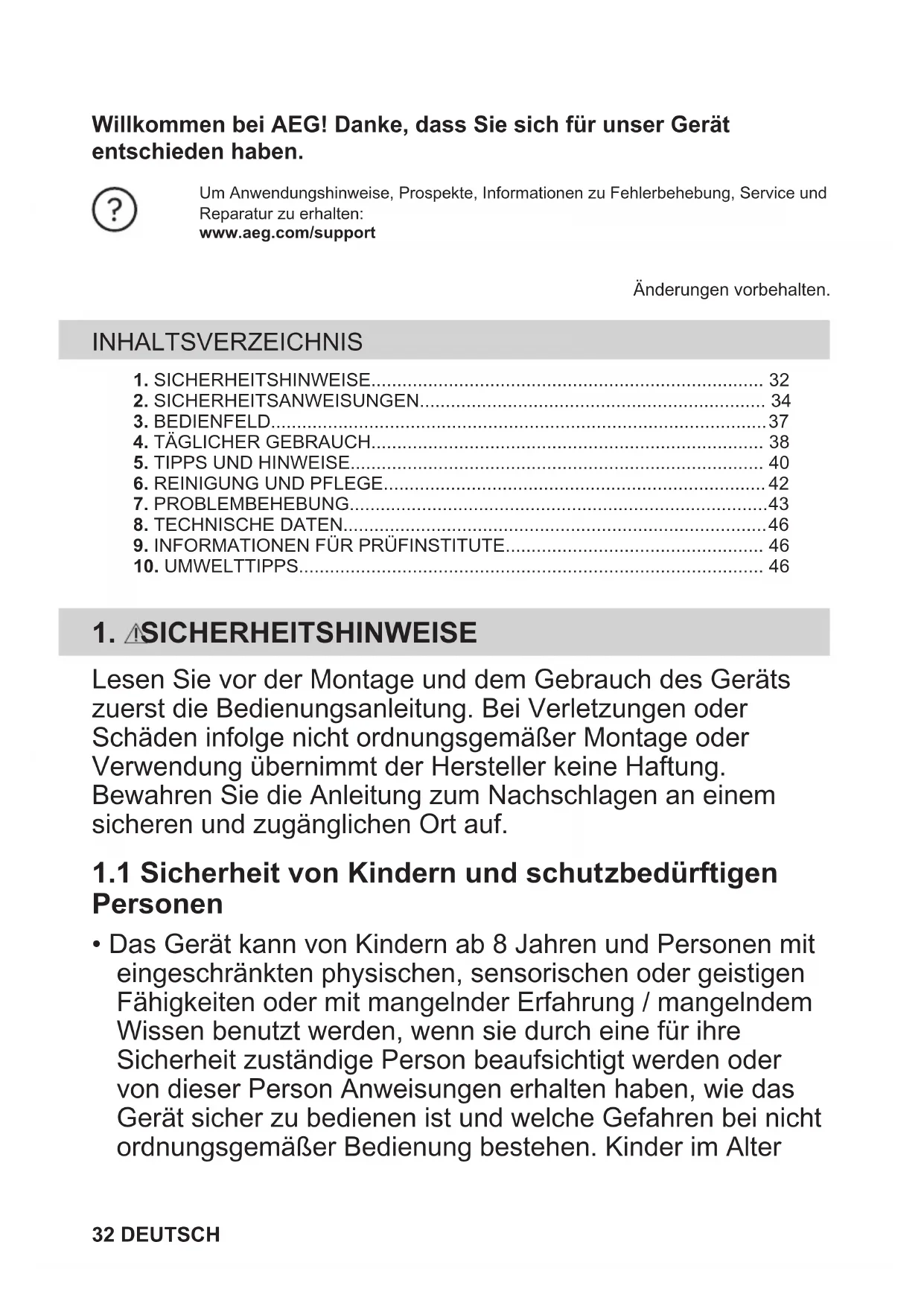 1. SICHERHEITSHINWEISE