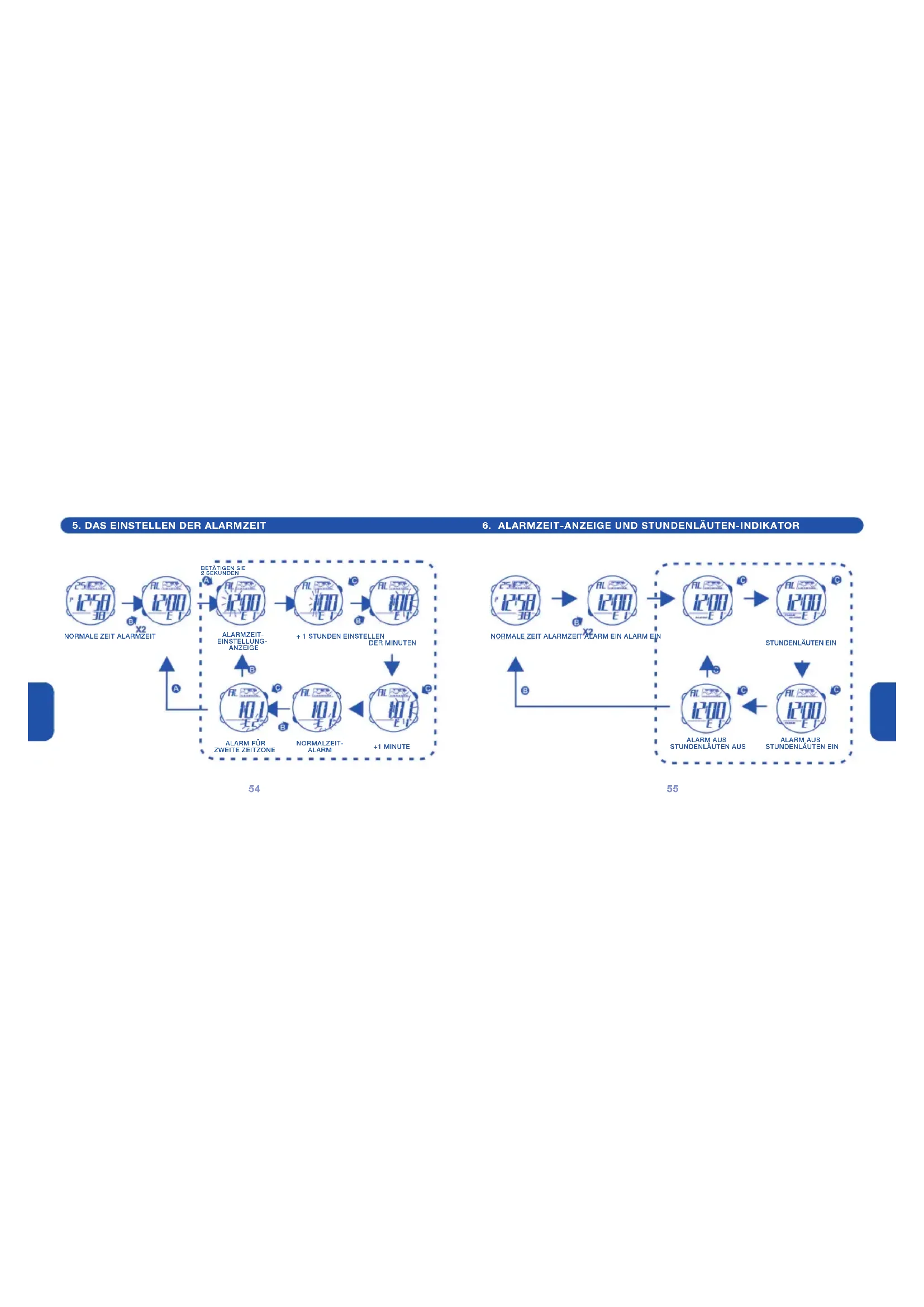 ZWEITE ZEITZONE NORMALZEIT- ALARM +1 MINUTE NORMALE ZEIT ALARMZEIT ALARM EIN ALARM EIN