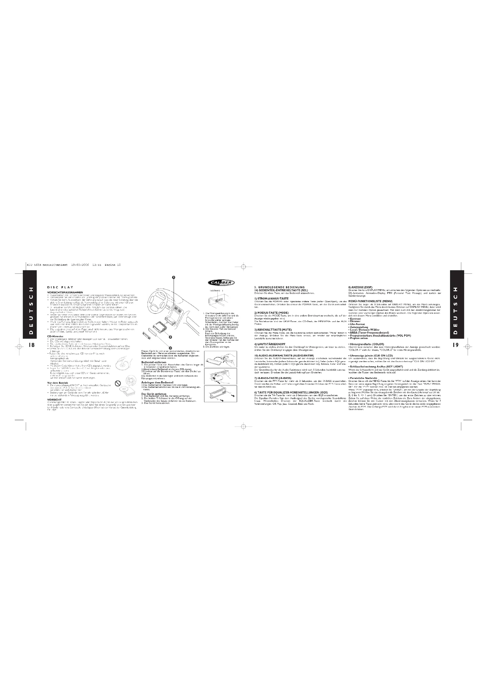 Laden Sie die Anleitung für Ihr Autoradio kostenlos im PDF-Format! Finden Sie Ihr Handbuch MCD 560 M - CALIBER und nehmen Sie Ihr elektronisches Gerät wieder in die Hand. Auf dieser Seite sind alle Dokumente veröffentlicht, die für die Verwendung Ihres Geräts notwendig sind. MCD 560 M von der Marke CALIBER.