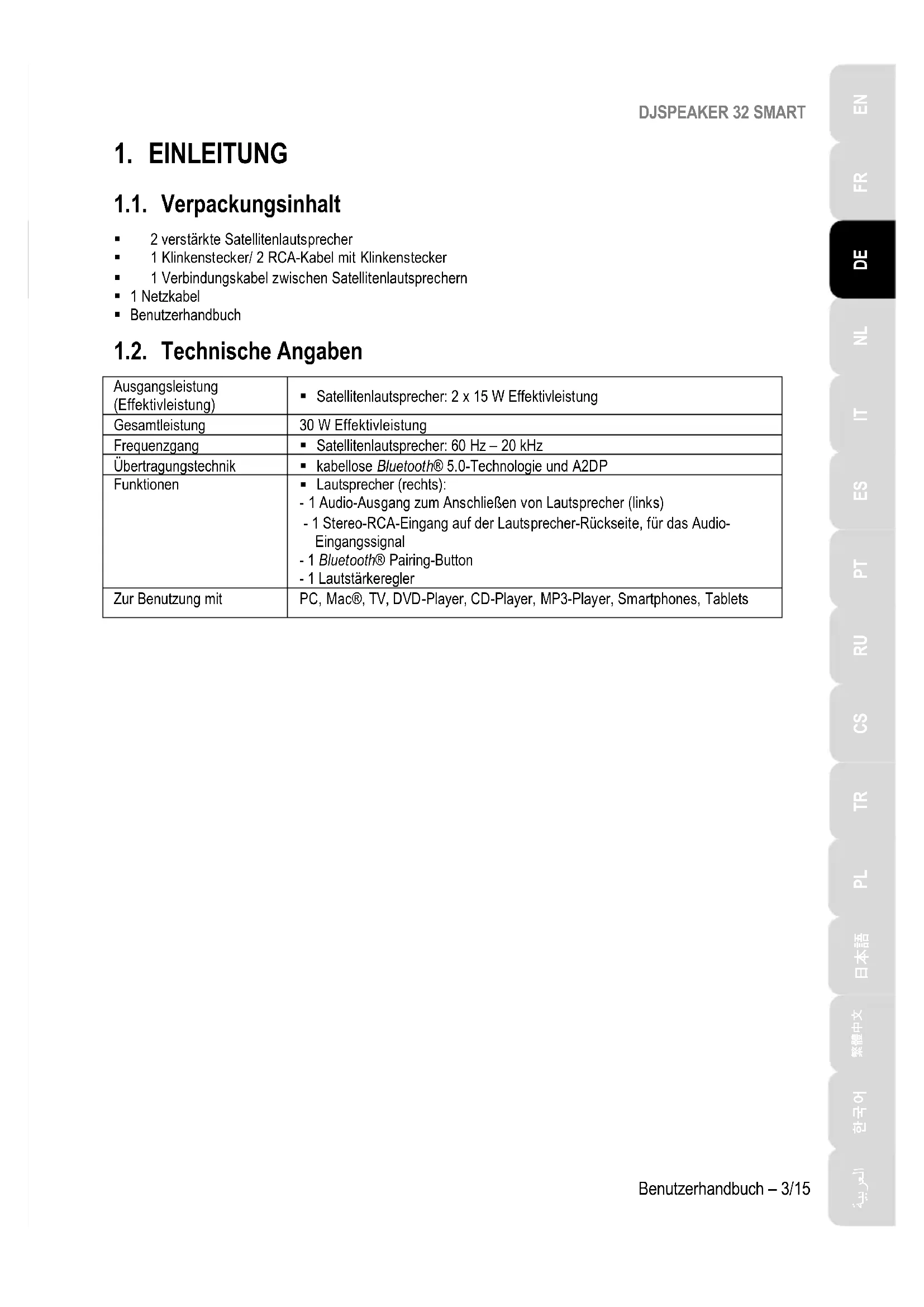Zuhörers aus.DJSPEAKER 32 SMART Benutzerhandbuch – 5/15