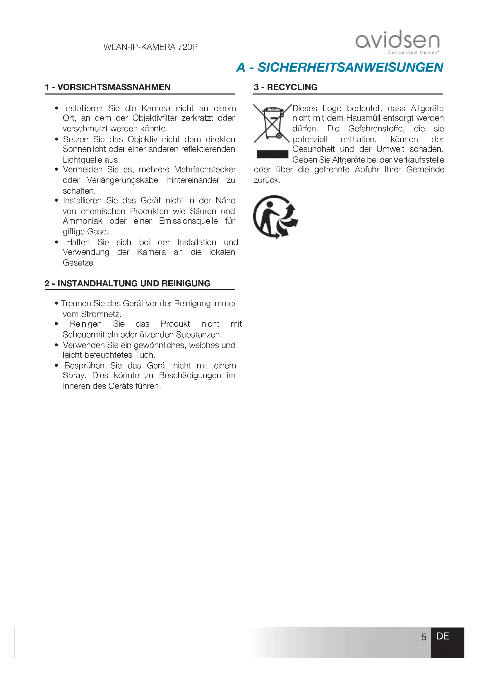 Laden Sie die Anleitung für Ihr Überwachungskamera kostenlos im PDF-Format! Finden Sie Ihr Handbuch 123981 - AVIDSEN und nehmen Sie Ihr elektronisches Gerät wieder in die Hand. Auf dieser Seite sind alle Dokumente veröffentlicht, die für die Verwendung Ihres Geräts notwendig sind. 123981 von der Marke AVIDSEN.