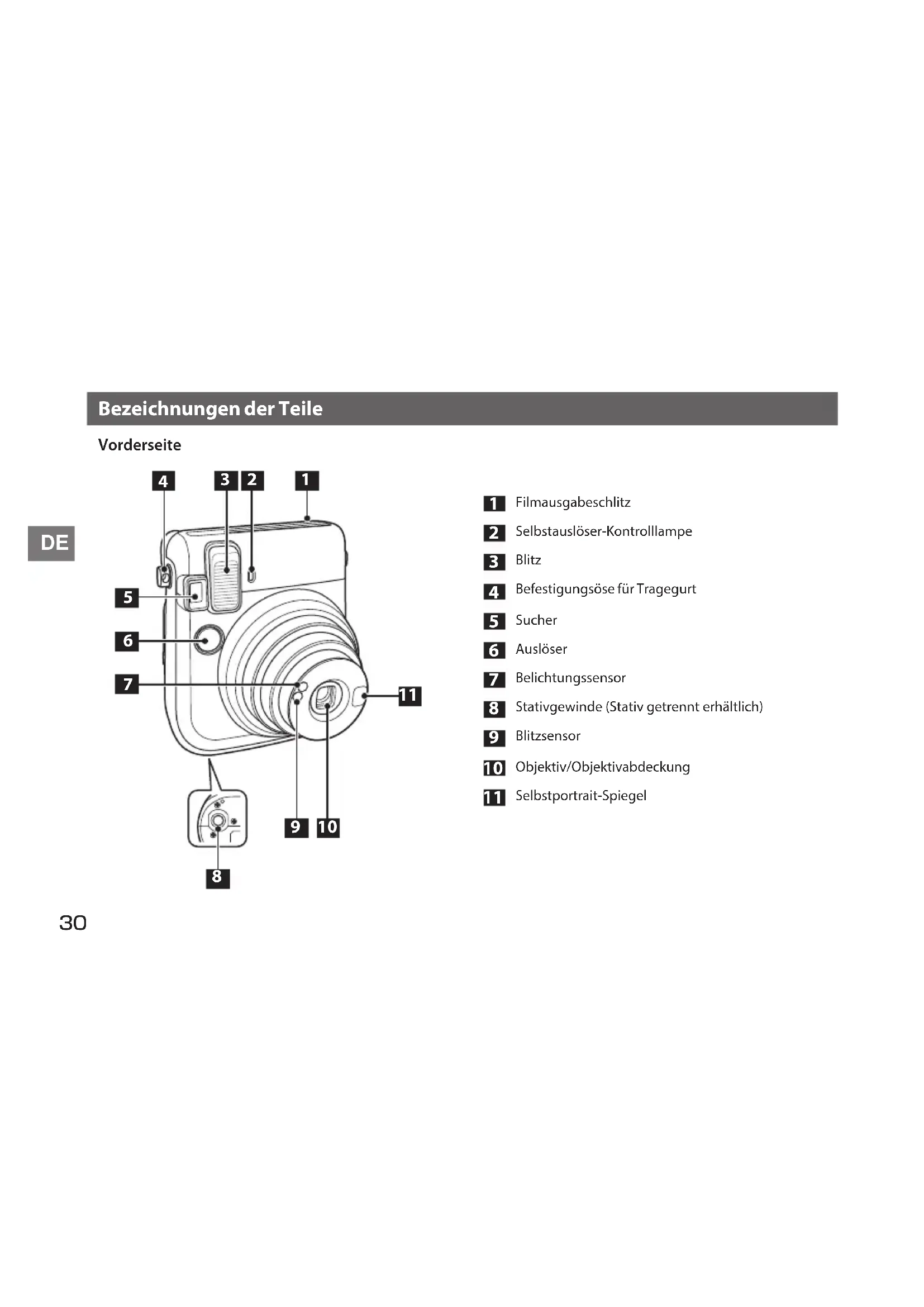 Bezeichnungen der Teile Vorderseite
