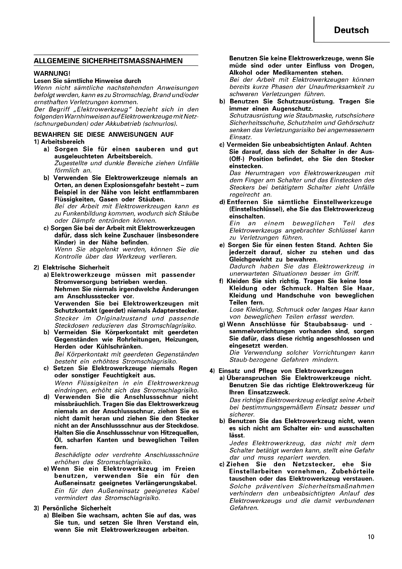 4) Einsatz und Pflege von Elektrowerkzeugen