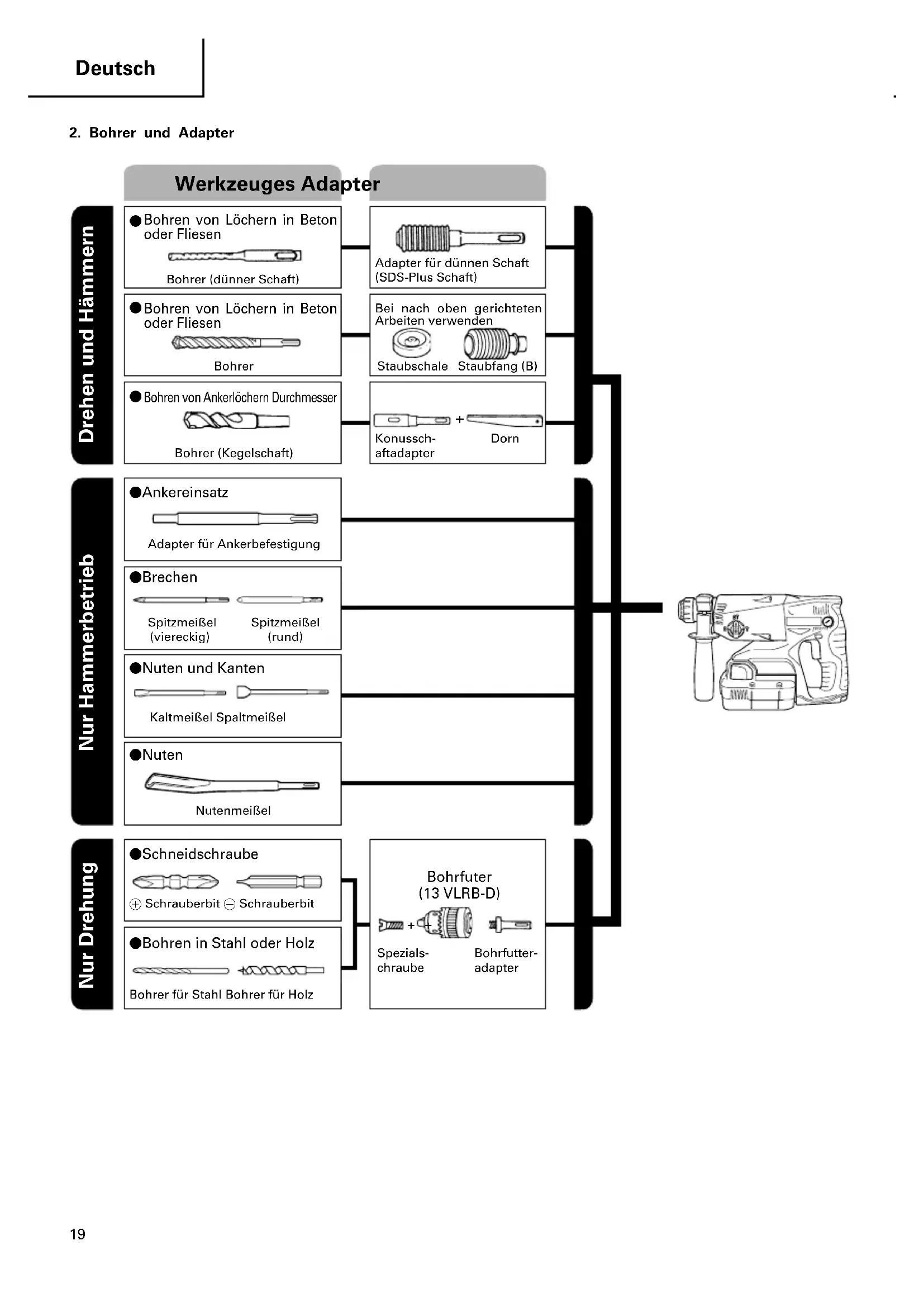 02Ger_DH24DVC(S)_WE 4/17/12, 9:251819 Deutsch Adapter für dünnen Schaft (SDS-Plus Schaft) Bohrer (dünner Schaft)