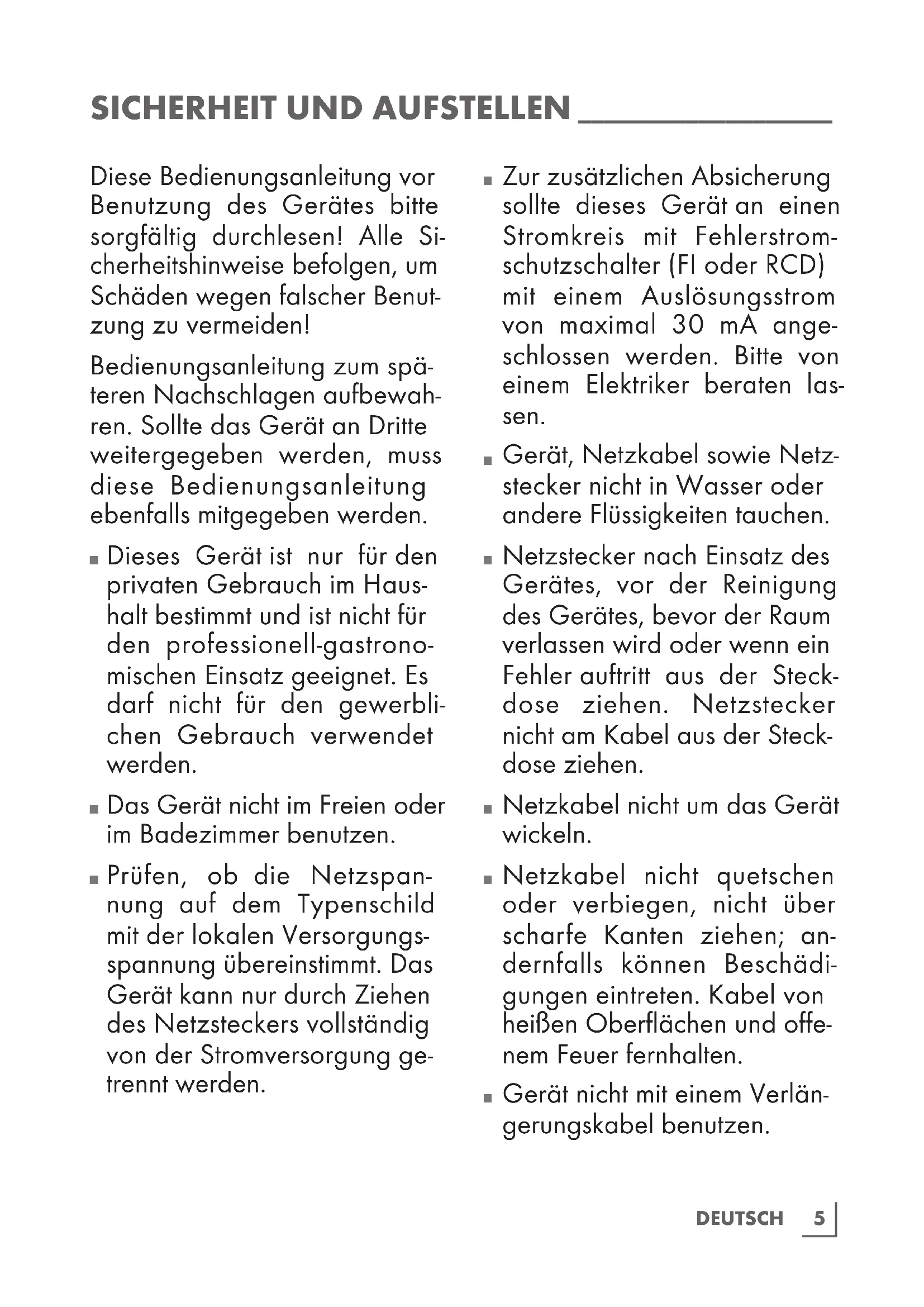 Dieses Gerät ist nur für den privaten Gebrauch im Haus- halt bestimmt und ist nicht für den professionell-gastrono- mischen Einsatz geeignet. Es darf nicht für den gewerbli- chen Gebrauch verwendet werden.