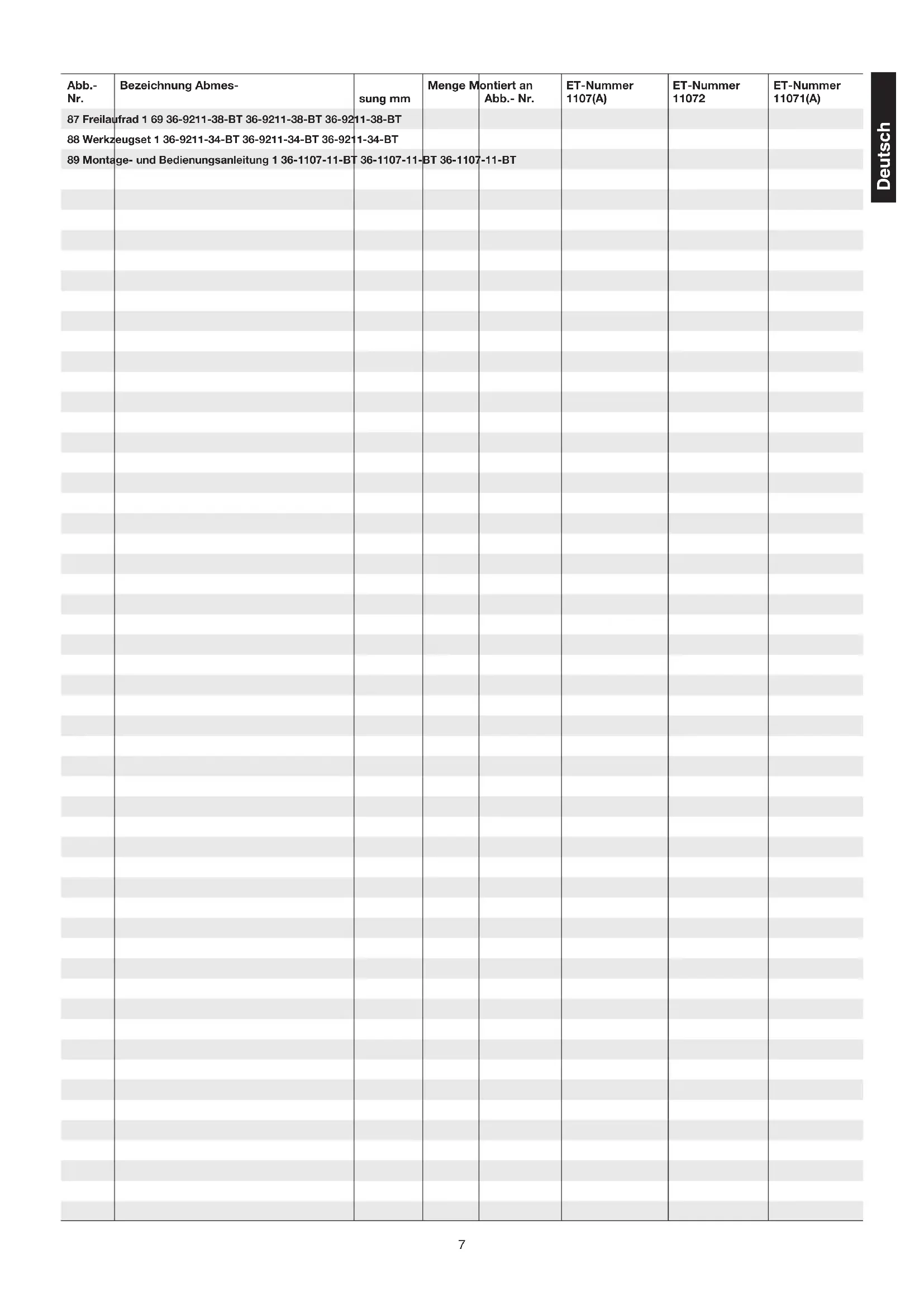 3. Stückliste Seite 5 - 7