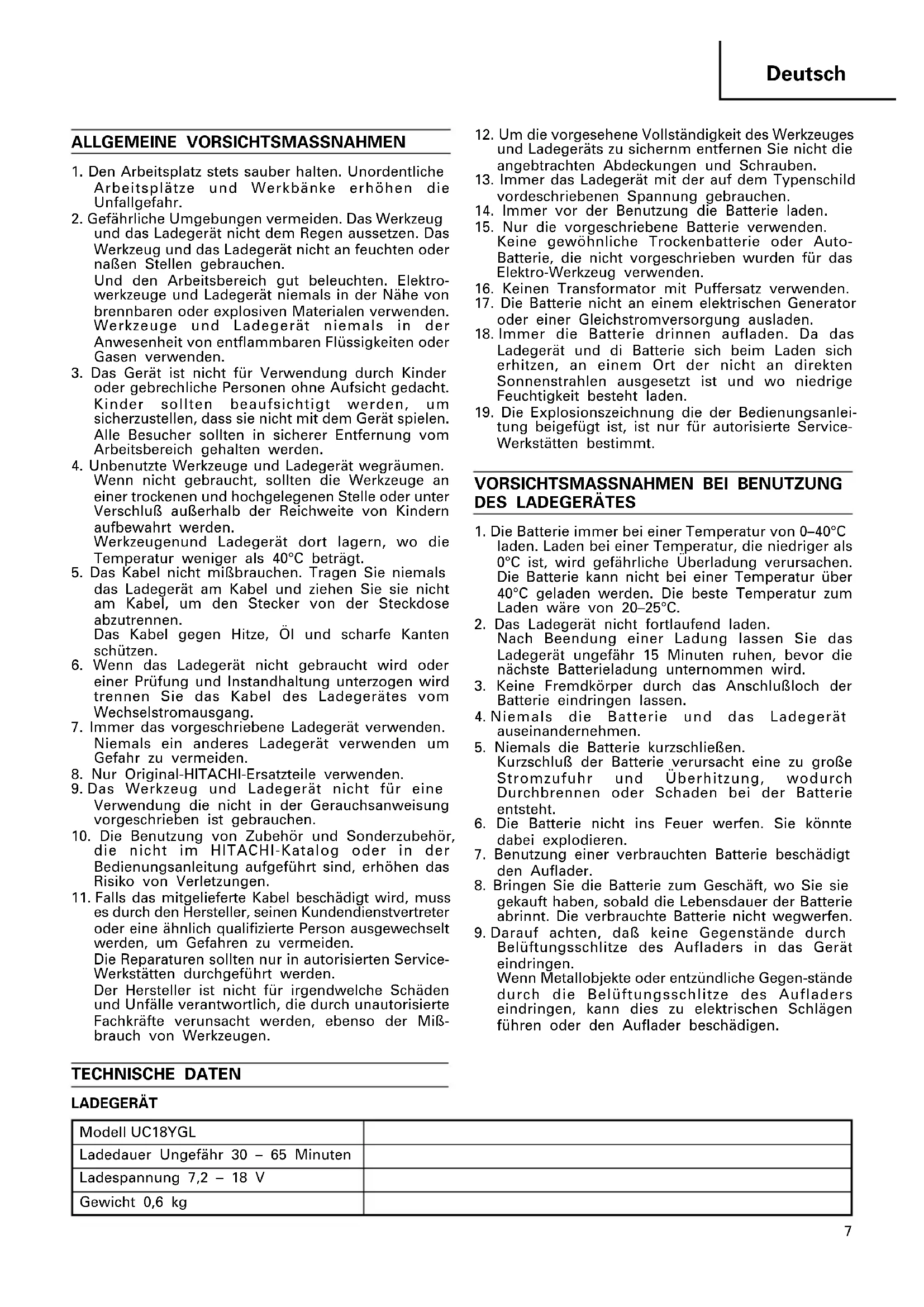 BEDIENUNGSANLEITUNG UC 18YGL HITACHI
