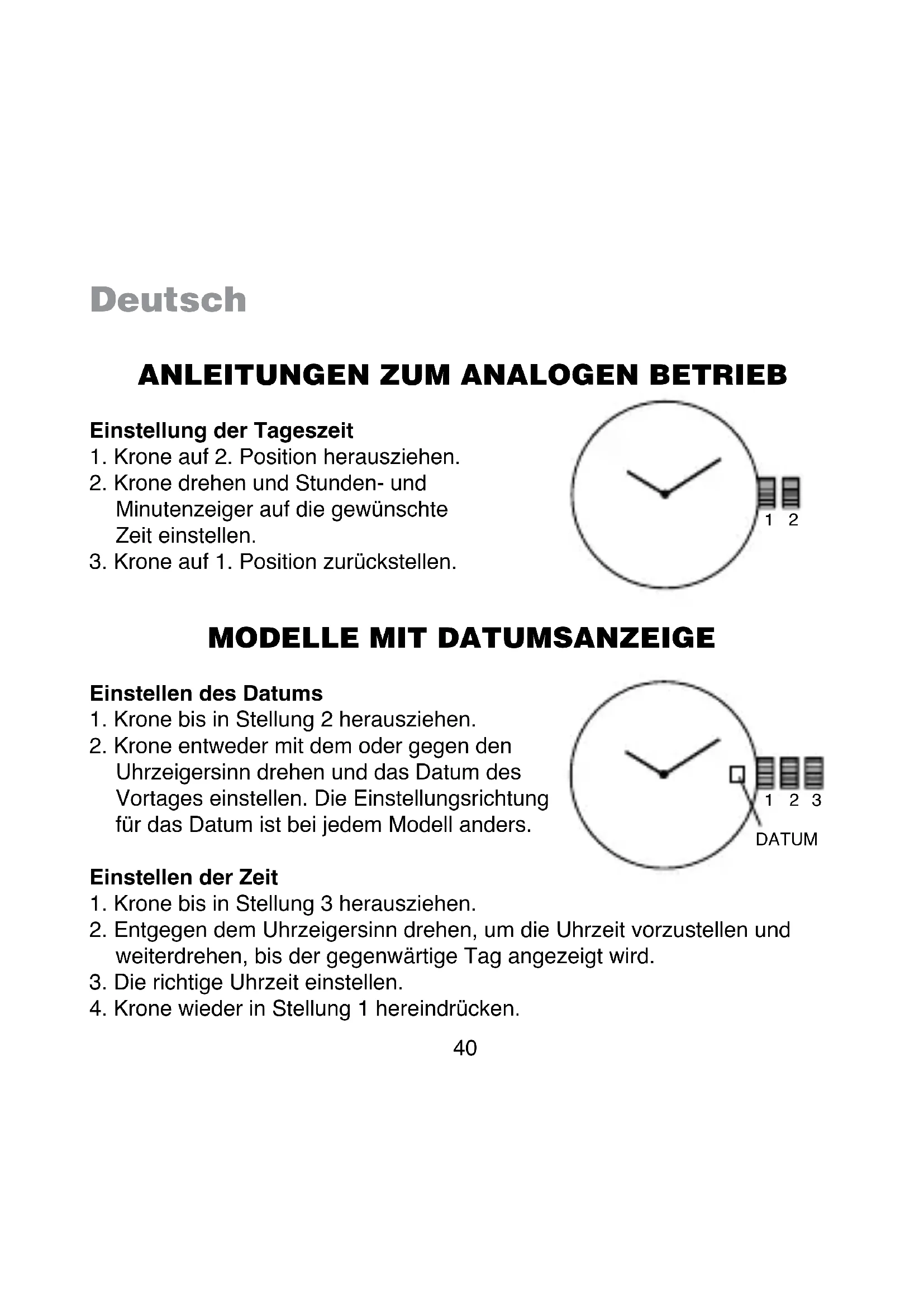 stellen. Die Zeiger bewegen sich nur im Uhrzeigersinn.
