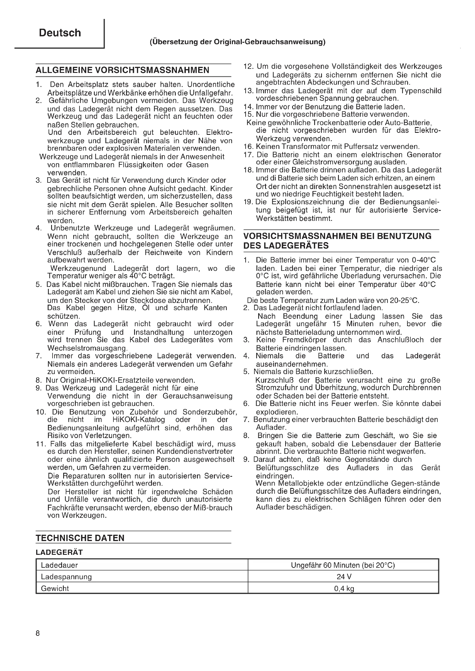 UC 24SGH - Batterieladegerät HiKOKI - Kostenlose Bedienungsanleitung