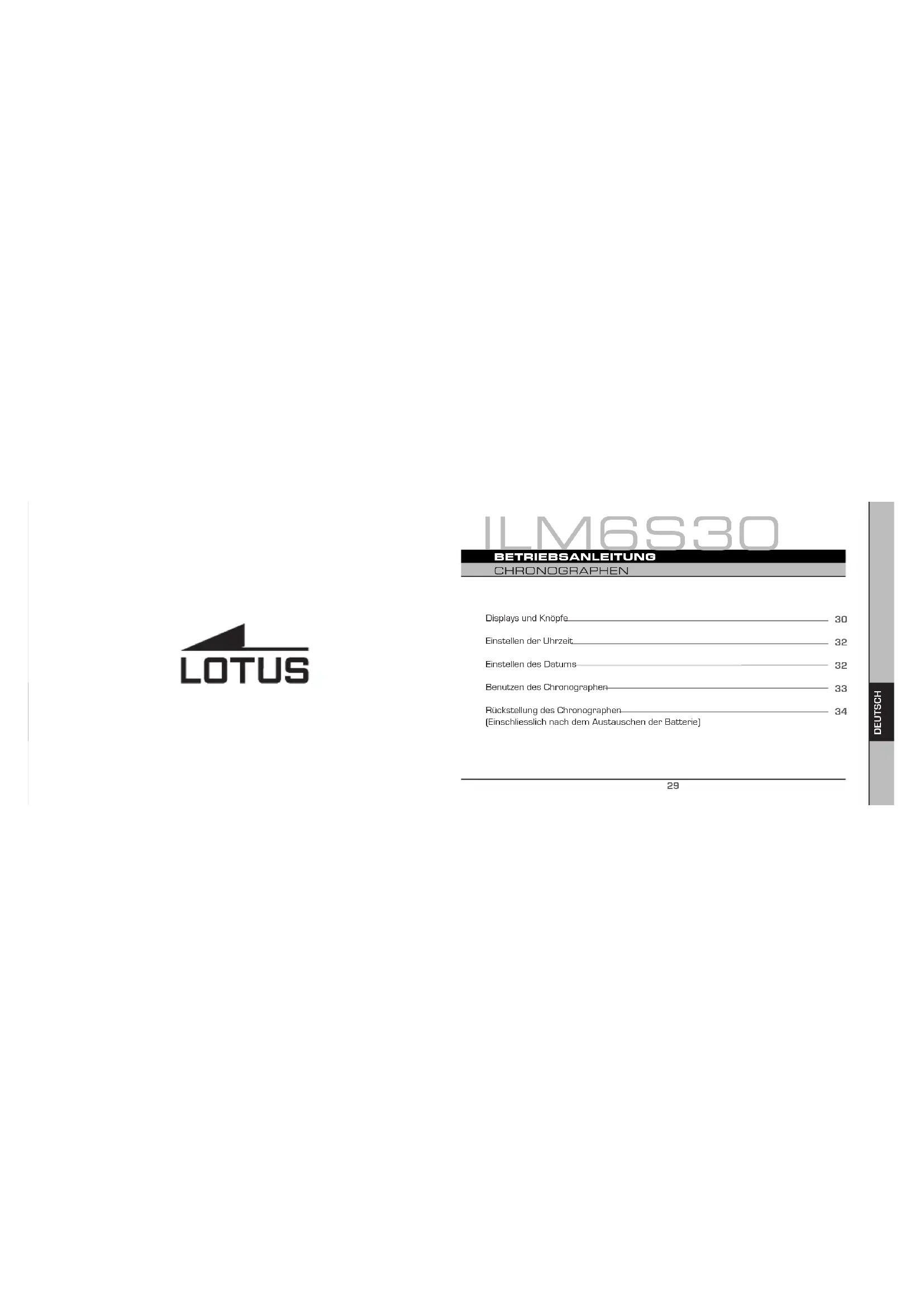 Laden Sie die Anleitung für Ihr Uhr kostenlos im PDF-Format! Finden Sie Ihr Handbuch 10112 - Lotus und nehmen Sie Ihr elektronisches Gerät wieder in die Hand. Auf dieser Seite sind alle Dokumente veröffentlicht, die für die Verwendung Ihres Geräts notwendig sind. 10112 von der Marke Lotus.