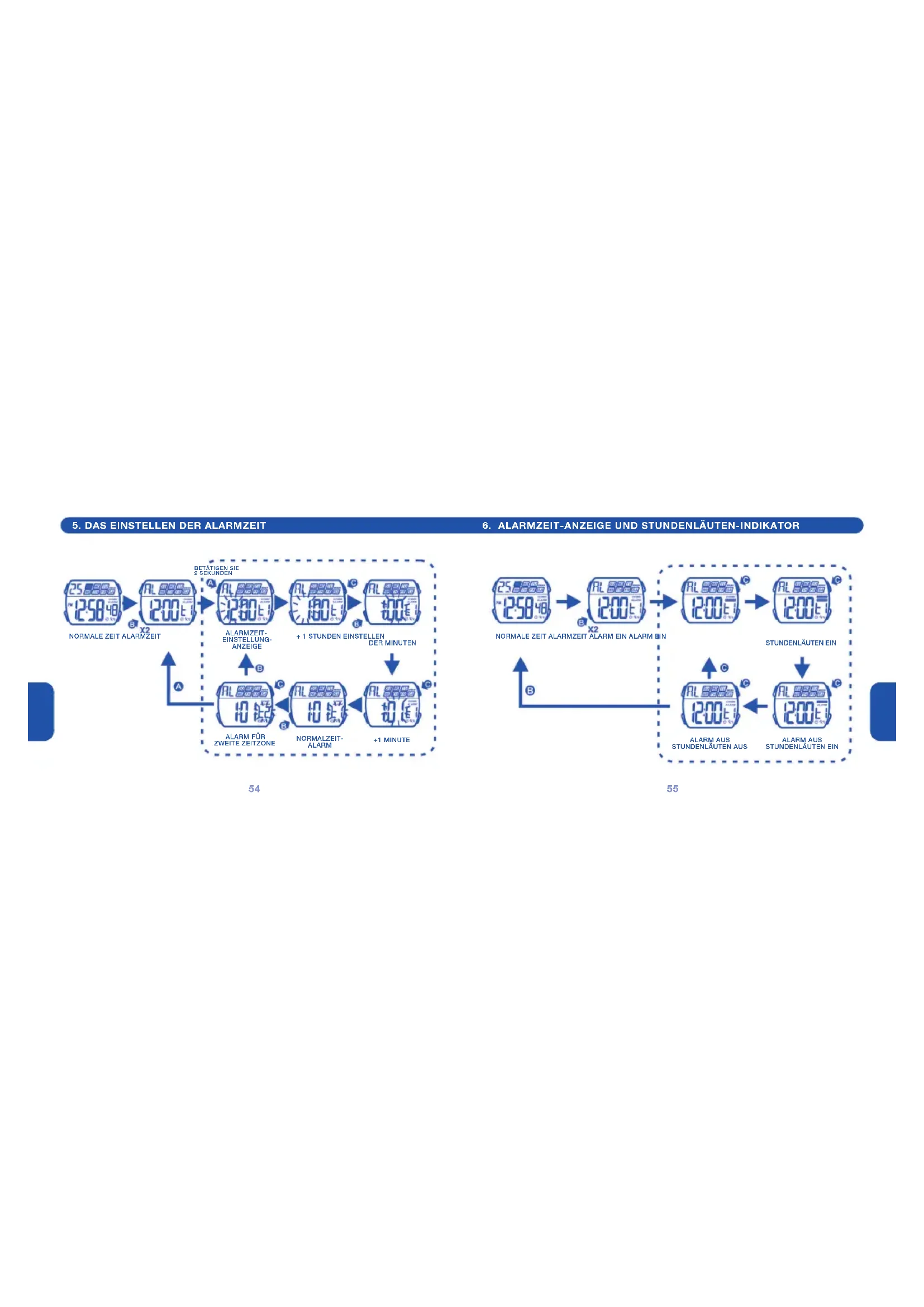 ZWEITE ZEITZONE NORMALZEIT- ALARM +1 MINUTE NORMALE ZEIT ALARMZEIT ALARM EIN ALARM EIN