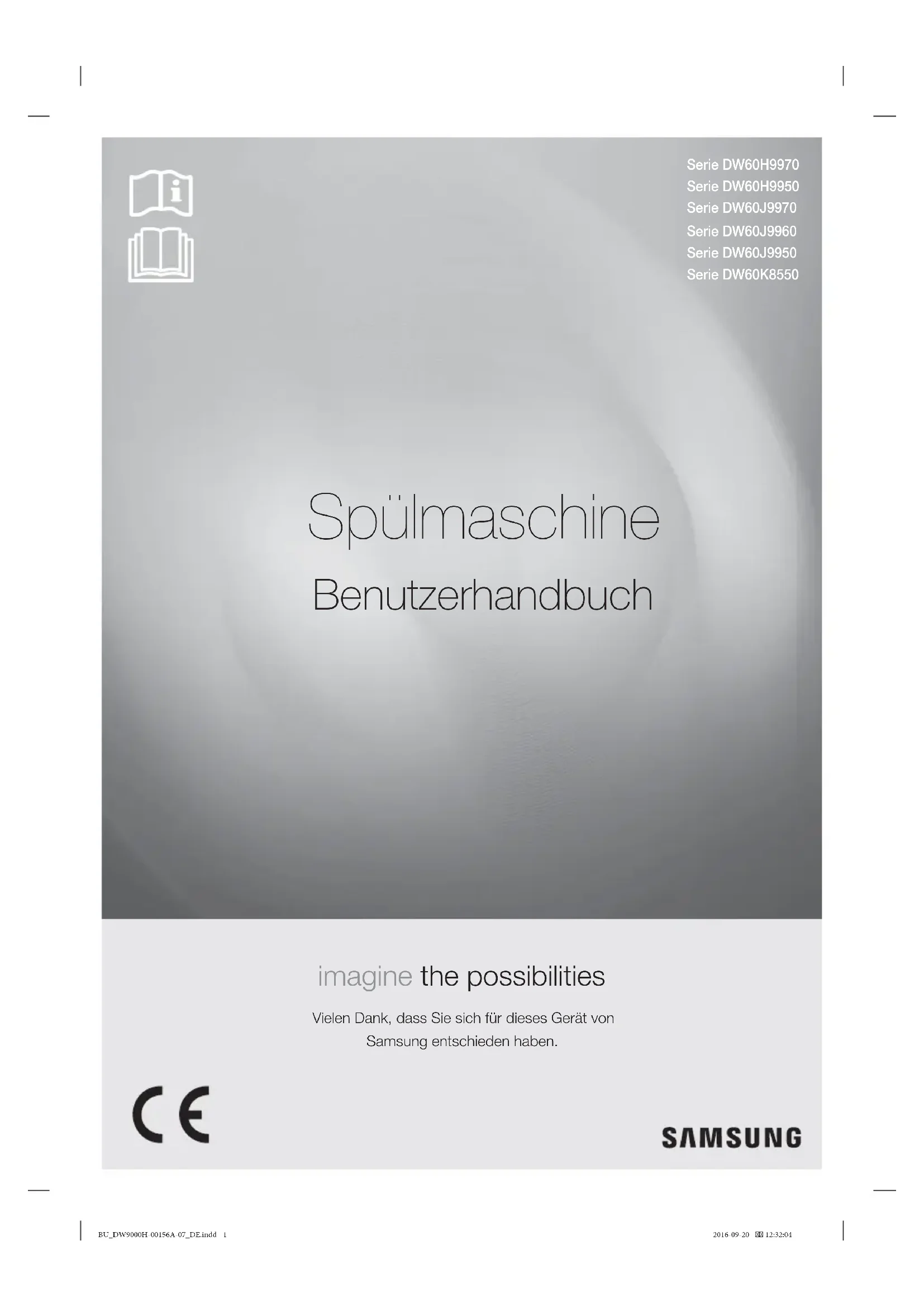 Inhalt BU_DW9000H-00156A-07_DE.indd 2BU_DW9000H-00156A-07_DE.indd 2 2016-09-20 12:32:072016-09-20 12:32:07Deutsch - 3 01 SICHERHEITSINFORMATIONEN Sicherheitshinweise Wir freuen uns, dass Sie sich für eine neue Spülmaschine von Samsung entschieden haben. Dieses Handbuch enthält wichtige Informationen bezüglich des Anschlusses, der Verwendung und der Pfl ege Ihres neuen Geräts. Nehmen Sie sich bitte etwas Zeit, um dieses Handbuch zu lesen, denn nur so können Sie die vielen Vorteile und Funktionen Ihrer Spülmaschine voll nutzen.