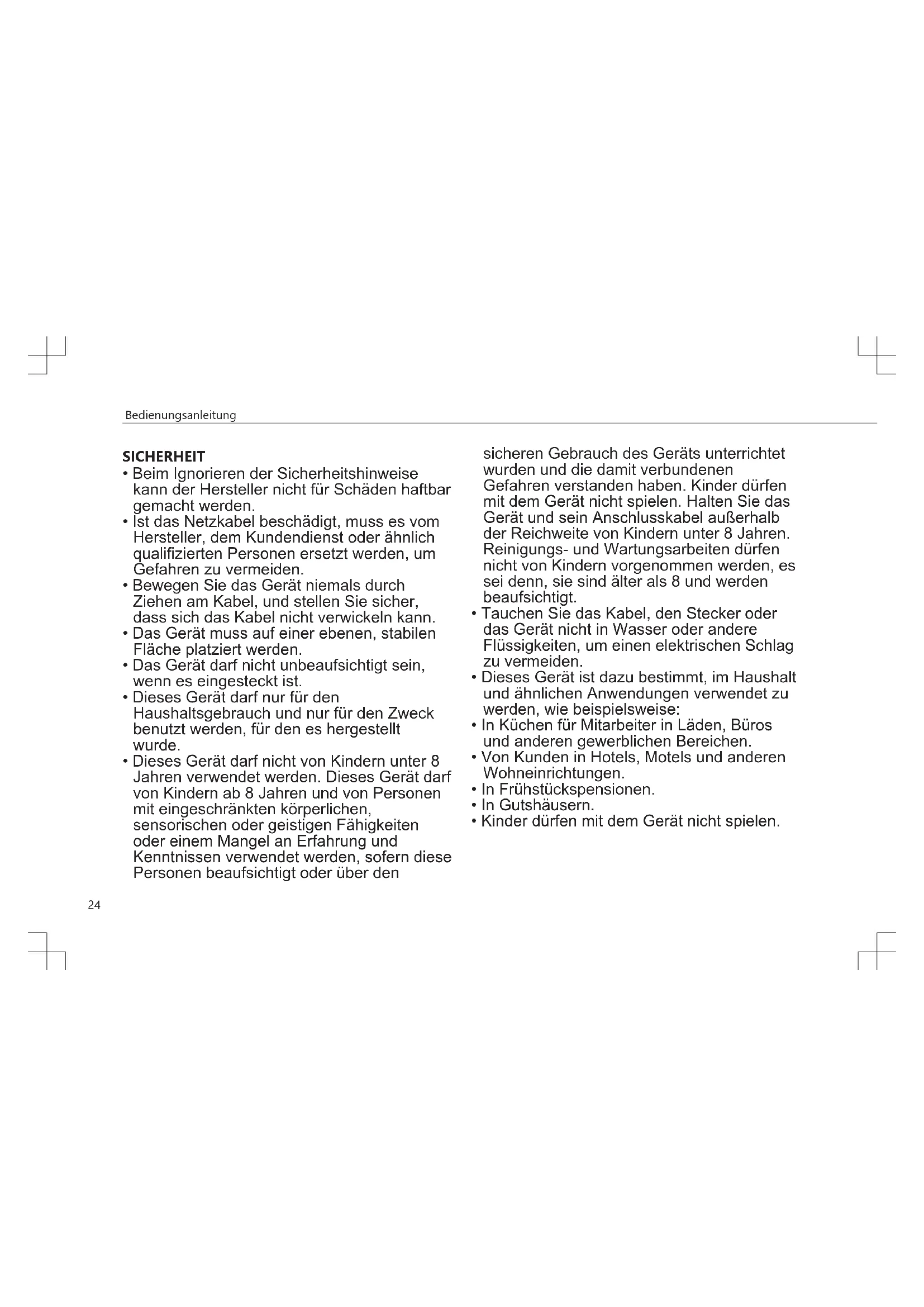 - Dieses Gerät darf nur für den Haushaltsgebrauch und nur für den Zweck benutzt werden, für den es hergestellt wurde.