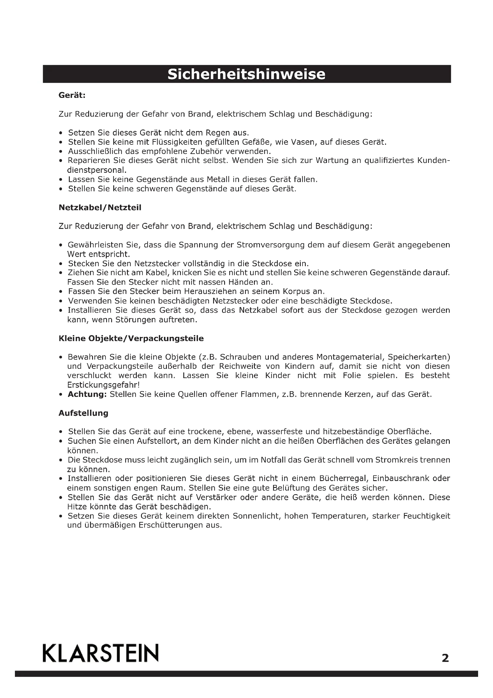 Finden Sie kostenlos die Bedienungsanleitung des Geräts 10021358 Klarstein als PDF.
