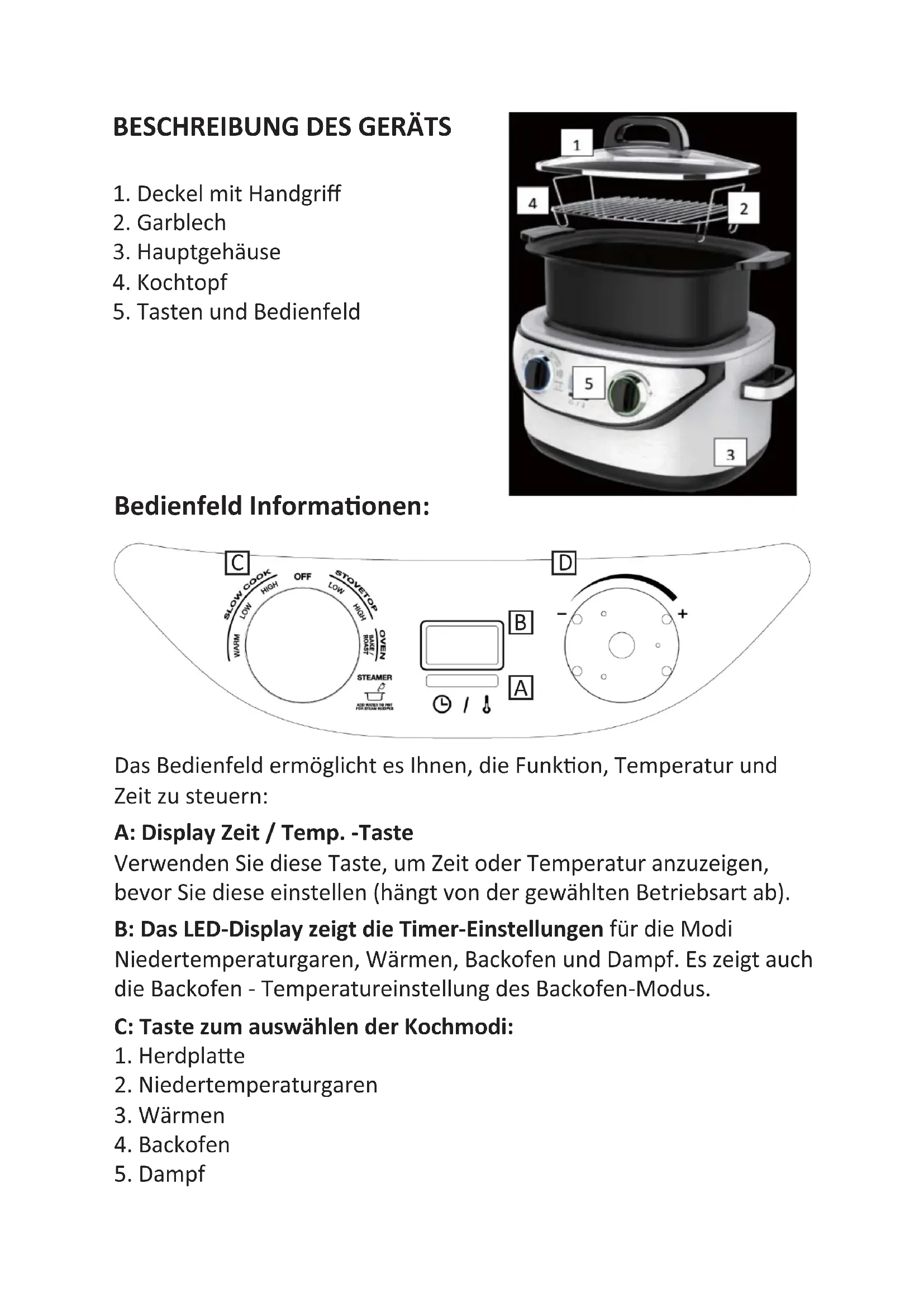 !:?&;1#">#für die Modi Niedertemperaturgaren, Wärmen, Backofen und Dampf. Es zeigt auch die Backofen - Temperatureinstellung des Backofen-Modus. :>1(+"":