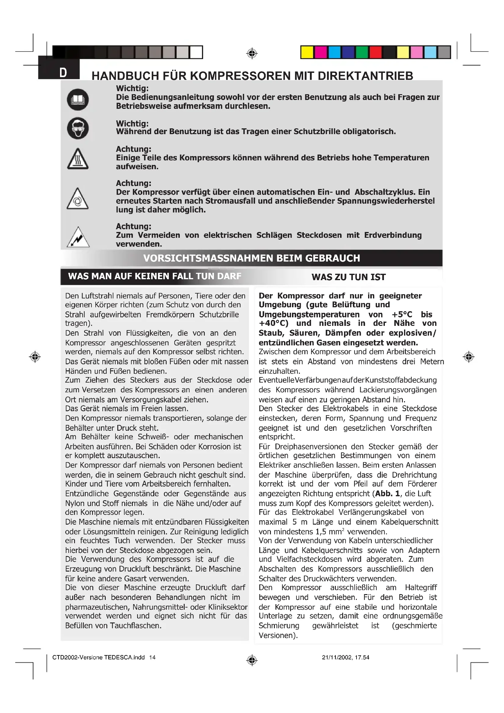 - Ansonsten gelten für Deutschland die Vorschriften der Druckbehälterverordnung CTD2002-Versione TEDESCA.indd 15 11/12/2002, 10.17.36I