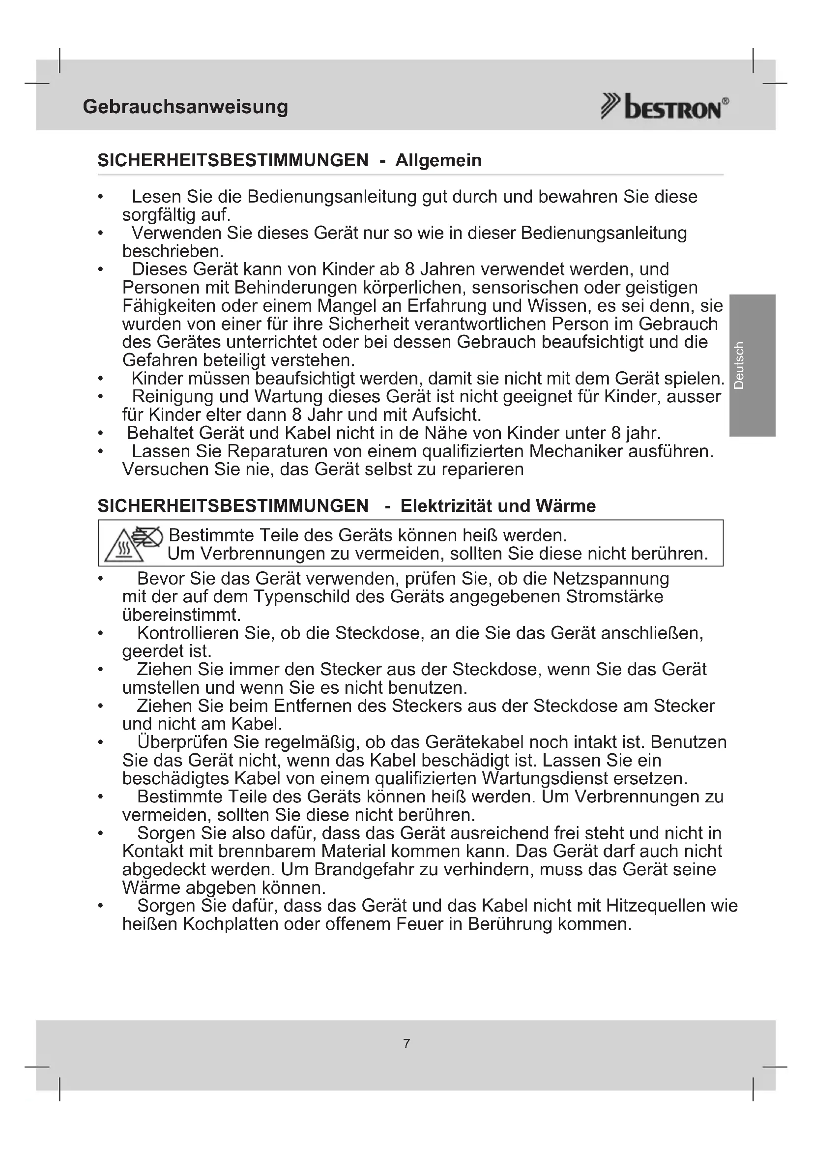 Sollte unerwartet eine Störung auftreten dann können Sie sich mit dem BESTRON-Kundendienst in Verbindungsetzen:www.bestron.com/service