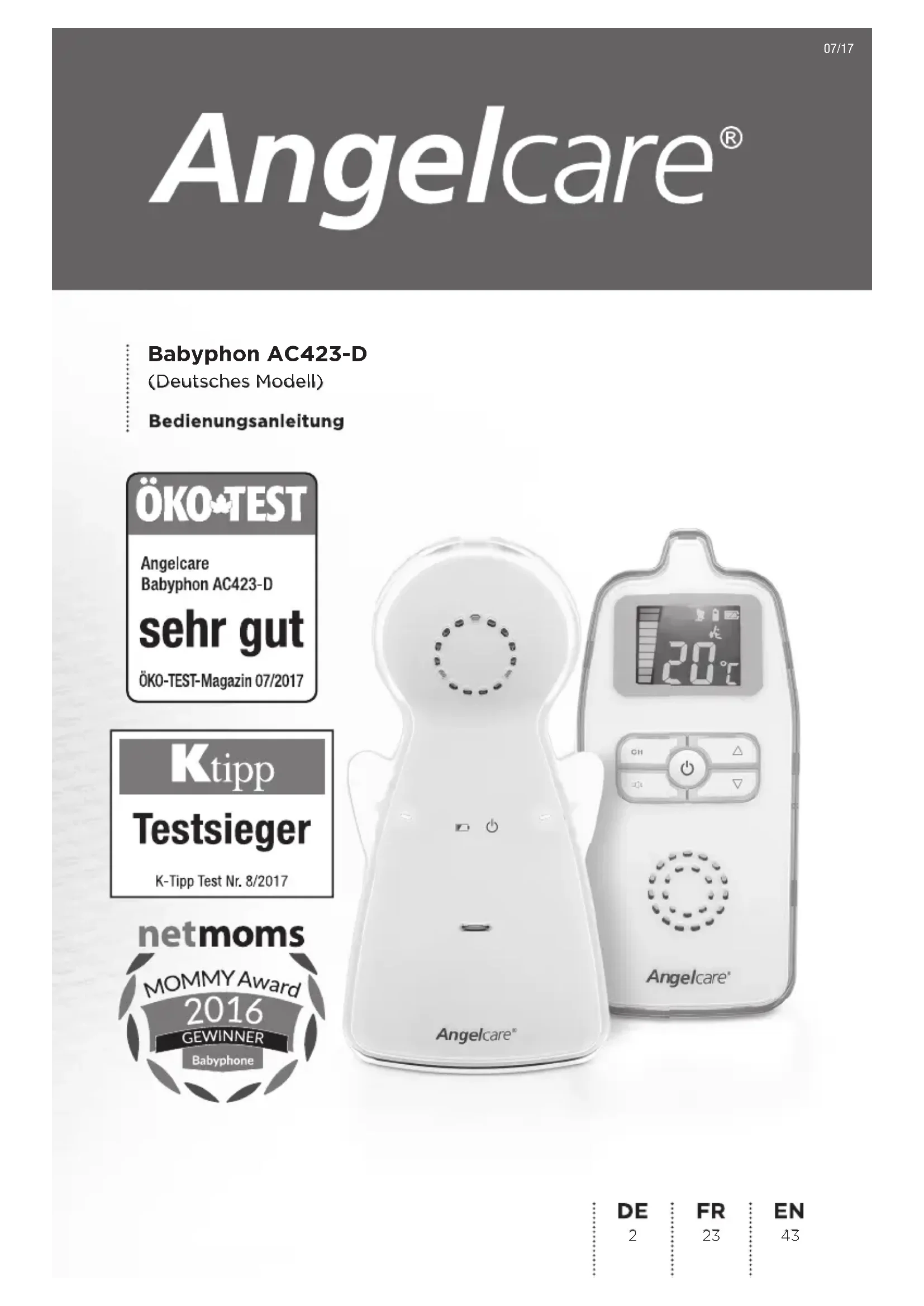 Finden Sie kostenlos die Bedienungsanleitung des Geräts AC423D ANGELCARE als PDF.