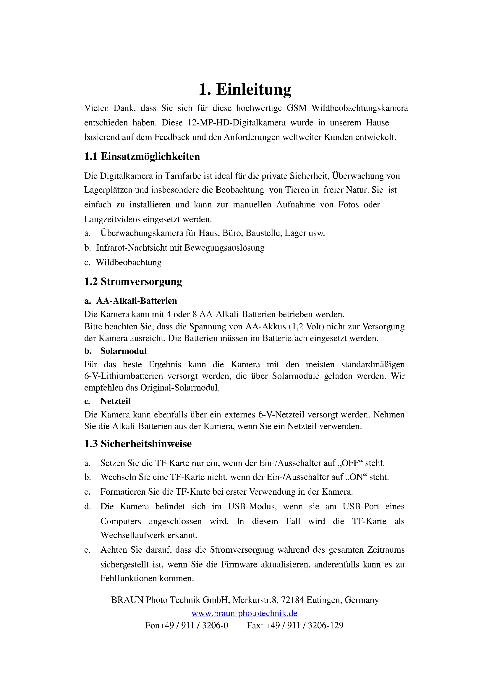 Vielen Dank, dass Sie sich für diese hochwertige GSM Wildbeobachtungskamera entschieden haben. Diese 12-MP-HD-Digitalkamera wurde in unserem Hause basierend auf dem Feedback und den Anforderungen weltweiter Kunden entwickelt.