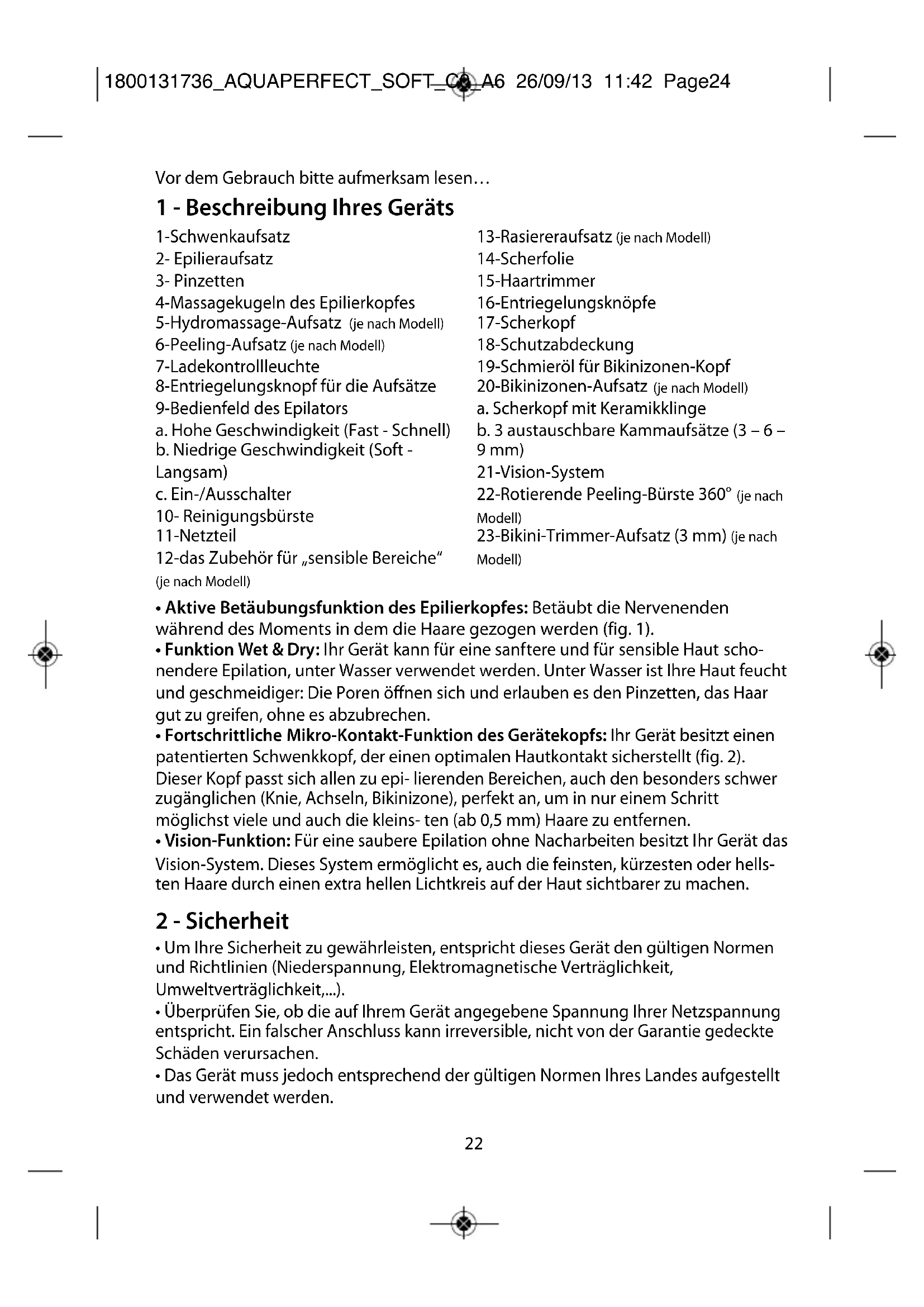 | 1-Schwenkaufsatz | 13-Rasiereraufsatz (je nach Modell) |
