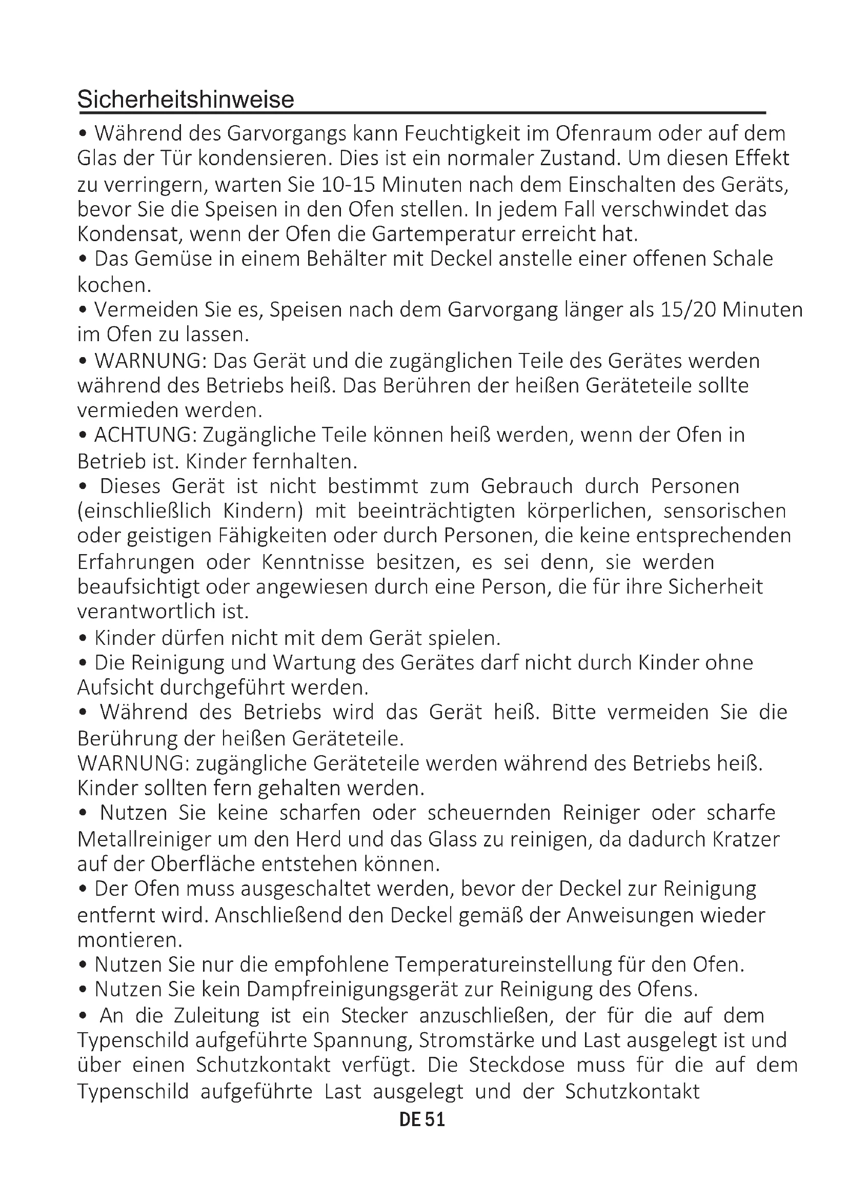 - Nutzen Sie kein Dampfreinigungsgerät zur Reinigung des Ofens.