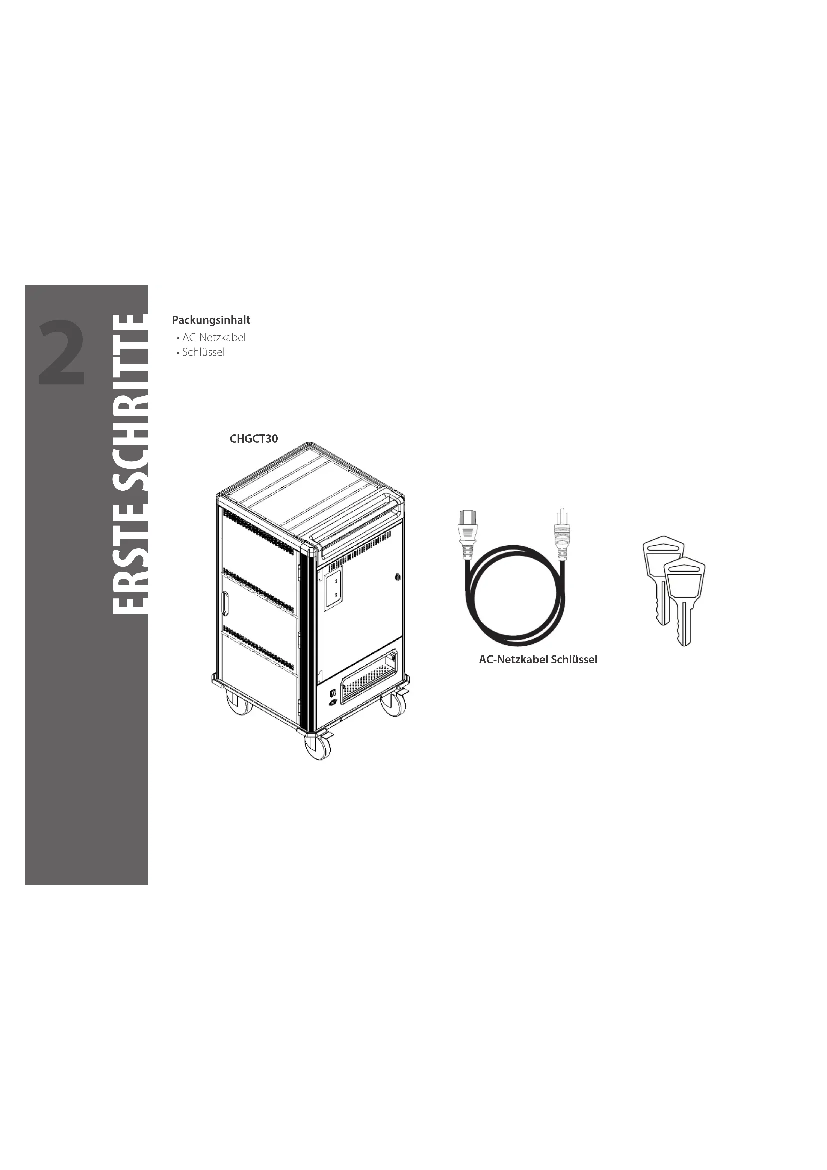 Ladewagen1 Sicherheits- und Warnhinweise 2 Erste Schritte Packungsinhalt Übersicht Auspacken Abschließen des Wagens 3 Einrichtung Anschließen von Geräten Erweiterte Funktionen 4 Technische Daten INHALTSVERZEICHNIS1