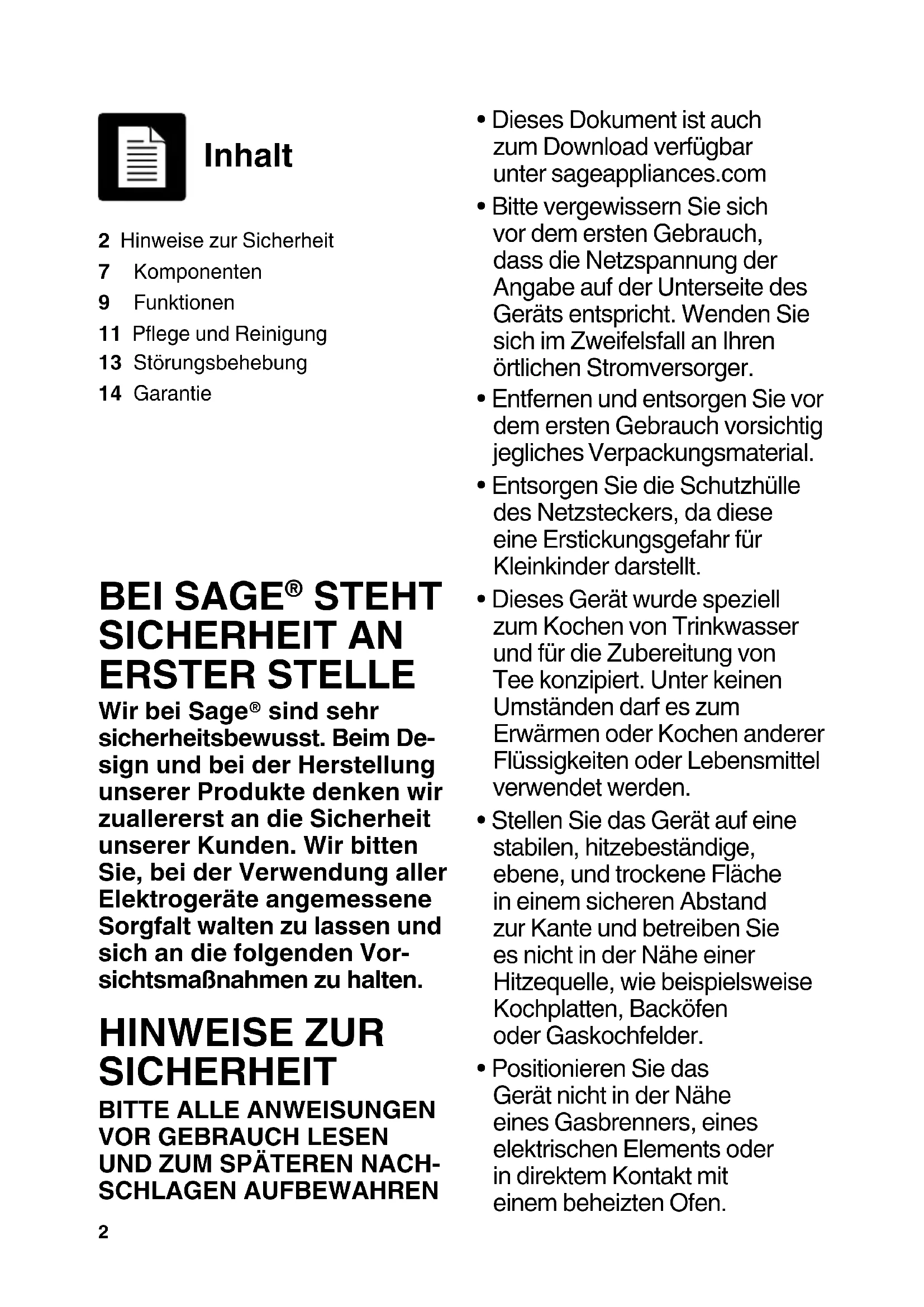 - Dieses Dokument ist auch zum Download verfügbar unter sageappliances.com