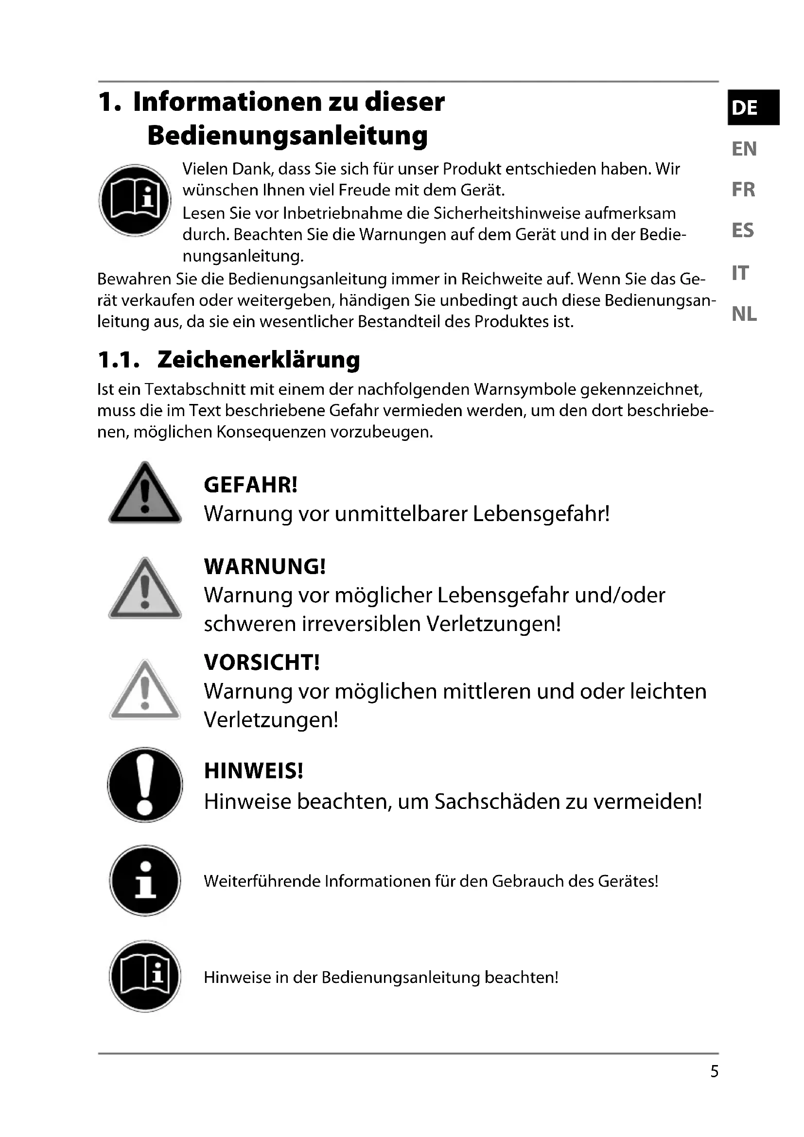 1. Informationen zu dieser Bedienungsanleitung ........................................ 5