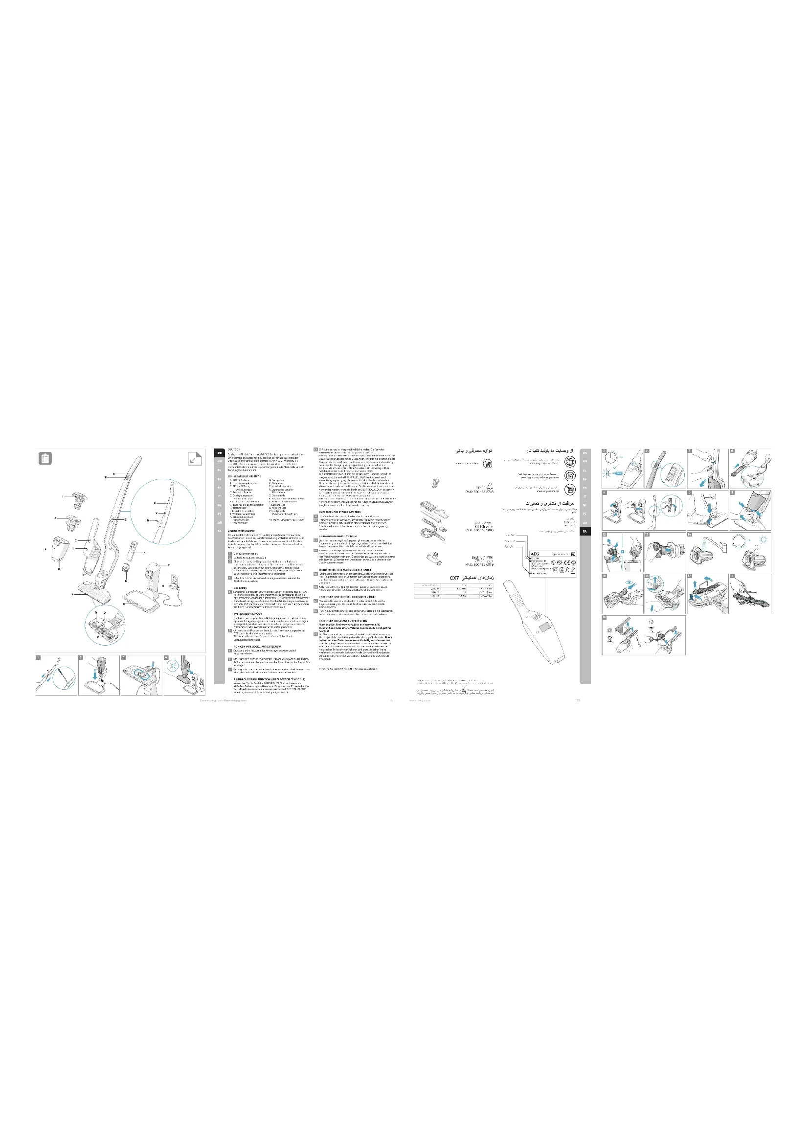2www.aeg.com 3www.aeg.com DEUTSCHDanke, dass Sie sich für einen AEG CX7 Staubsauger entschieden haben. Um bestmögliche Ergebnisse zu erzielen, sollten Sie ausschließlich Originalzubehör und Originalersatzteile von AEG verwenden, die speziell für Ihren Staubsauger entwickelt wurden. Dieses Produkt wurde mit Rücksicht auf die Umwelt hergestellt. Alle Plastikteile sind für Recyclingzwecke markiert.CX7 GERÄTEBESCHREIBUNGA. EIN-/AUS-TasteB. LeistungsregelungstasteC. EIN-/AUS-Taste, HandstaubsaugerD. FeststellschraubeE. Entriegelungstaste, HandstaubsaugerF. Ladestation, WandeinheitG. Ladestation, BodenaufstellerH. NetzsteckerI. Feinlter (Innenlter)J. Vorlter (Außenlter)K. Entriegelungstaste, StaubbehälterL. Staubbehälter M. SaugpinselN. FugendüseO. KabelschutzgitterP. Lagerabdeckung für BürstenrolleQ. BürstenrolleR. Fußtaste* BRUSHROLLCLEAN® S. Vordere DüsenleuchtenT. LadeanzeigeU. KlippenbügelV. Steckplatz für Zubehöraufbewahrung* Nicht bei Modellen CX7-2-30xxxVOR INBETRIEBNAHMEStellen Sie sicher, dass alle in der vorliegenden Gebrauchsanweisung beschriebenen Teile in der Geräteverpackung enthalten sind und lesen Sie die vorliegende Gebrauchsanweisung aufmerksam durch. Beachten Sie insbesondere das Kapitel „Sicherheitshinweise“. Bewahren Sie diese Anweisungen gut auf.1 Gri zusammenbauen.2 Ladestation zusammenbauen.3 Überschüssige Kabellänge kann im Hohlraum am Boden der Ladestation aufgewickelt werden. Steckernetzteil an Netzsteckdose anschließen. Ladestation auf eine waagerechte, stabile Fläche stellen. Dabei ausreichende Entfernung zu Hitzequellen, direkter Sonnenstrahlung und Feuchtzonen sicherstellen. 4 Sobald der CX7 in die Ladestation eingesetzt wird, leuchtet die Kontrolllampe „Laden“.CX7 LADEN 5 Langsames Blinken der Kontrolllampe „Laden“ bedeutet, dass der CX7 vollständig geladen ist. Der Fortschritt des Ladevorgangs durch die entsprechende Anzahl der leuchtenden LEDs gekennzeichnet. Die volle Auadezeit beträgt ca. 4 Stunden. Um die Akkuleistung zu verbessern, laden Sie CX7 vor dem ersten Gebrauch 24 Stunden auf und bewahren Sie ihn bei Nichtgebrauch in der Ladestation auf.STAUBSAUGEN MIT CX7 Um Kratzer auf empndlichen Bodenbelägen zu vermeiden und das optimale Reinigungsergebnis zu erzielen, sollte vor dem Staubsaugen sichergestellt werden, dass sich keine scharfen Gegenstände in den Düsenrädern oder in der Bürstenrolle verfangen haben. 6 CX7 wird durch Drücken der Taste „Ein/Aus“ ein- bzw. ausgeschaltet. CX7 startet im Hochleistungsmodus. Für leiseren Betrieb und längere Laufzeit drücken Sie die Leistungsregelungstaste.REINIGEN VON MÖBEL, AUTOSITZE USW. 7 Drücken Sie die Taste, um den Akkusauger aus dem Gestell herauszunehmen. 8 Die Fugendüse anbringen, um beim Reinigen die schwer zugänglichen Stellen zu erreichen. Zum Abstauben den Saugpinsel an der Fugendüse anbringen. 9 Die Fugendüse und die kleine Bürste können in der Ladestation oder im Steckplatz auf der Rückseite des Gris aufbewahrt werden.BRUSHROLLCLEAN® FUNKTION (NUR AUSGEWÄHLTE MODELLE) Verwenden Sie die Funktion BRUSHROLLCLEAN® zur besonders einfachen Entfernung von Haaren und Fasern aus der Bürstenrolle. Um beste Ergebnisse zu erzielen, verwenden Sie die BRUSHROLLCLEAN® Funktion, wenn der CX7 vollständig aufgeladen ist.10 CX7 auf eine stabile, waagerechte Fläche stellen. Die Funktion BRUSHROLLCLEAN® nicht auf Teppichen anwenden. Betätigen Sie die BRUSHROLLCLEAN® Fußtaste mit Ihrem Fuß, wenn der Staubsauger eingeschaltet ist. 5 Sekunden lang gedrückt halten, bis die Bürstenrolle frei von Haaren und Fasern ist. Die Geräuschentwicklung während des Reinigungsvorgangs ist völlig normal. Sollten die festgesetzten Haare beim ersten Versuch nicht vollständig entfernt worden sein, den Schritt noch einmal wiederholen. Die BRUSHROLLCLEAN® Funktion ist mit einem Überhitzungsschutz ausgestattet. Wenn die BRUSHROLLCLEAN® Funktion während eines Reinigungsvorgangs länger als 30 Sekunden (mit oder ohne Unterbrechungen) eingeschaltet war, schaltet er die Bürstenrolle und die vorderen Leuchten der Düse aus. Der Staubsauger kann auch dann verwendet werden, wenn die Funktion BRUSHROLLCLEAN® deaktiviert ist. Um die Funktion BRUSHROLLCLEAN® zu reaktivieren, CX7 in die Ladestation stecken und 15 Minuten lang auaden. Bitte beachten: Sollten sich dickere Fäden oder Draht in der Bürstenrolle verfangen haben, werden diese mit der Funktion BRUSHROLLCLEAN® möglicherweise nicht entfernt werden können. ENTLEEREN DES STAUBBEHÄLTERS11 Den Staubbehälter durch Drücken der Tasten entfernen. 12 Entriegelungstasten drücken, um die Filter aus dem Staubbehälter herauszunehmen. Filterinhalt in einen Abfallbehälter entleeren. Staubbehälter und Filter dürfen nicht im Geschirrspüler gereinigt werden.FILTERREINIGUNG IST WICHTIG!13 Die Filter müssen regelmäßig gereinigt werden, um eine hohe Saugleistung zu erzielen. Entriegelungstasten Drücken, um die Filter herauszunehmen. Den Innenlter vom Außenlter trennen.14 Filterteile vorsichtig mit lauwarmem Wasser abspülen. Keine Reinigungsmittel verwenden. (Keinesfalls im Geschirrspüler oder in der Waschmaschine reinigen.) Überschüssiges Wasser abschütteln und mindestens 12 Stunden trocknen lassen, bevor Sie sie wieder in den Staubsauger einsetzen.REINIGEN DES SCHLAUCHS UND DER RÄDER 15 Obere Schlauchverriegelung hinter der Düse lösen. Störende Objekte oder Rückstände, die den Luftstrom zum Staubbehälter behindern, aus dem Schlauch oder aus dem Luftkanal entfernen. Schlauch wieder anbringen. 16 Räder, die schwergängig werden oder gereinigt werden müssen, vorsichtig mit einem achen Schraubendreher abnehmen.ENTFERNEN UND REINIGEN DER BÜRSTENROLLE 17 Wenn die Bürstenrolle blockiert wird, schaltet sich CX7 ab. Die Lagerabdeckung der Bürstenrolle önen und die Bürstenrolle herausnehmen. 18 Fäden u. ä. mithilfe einer Schere entfernen. Setzen Sie die Bürstenrolle wieder ein und achten Sie darauf, dass 