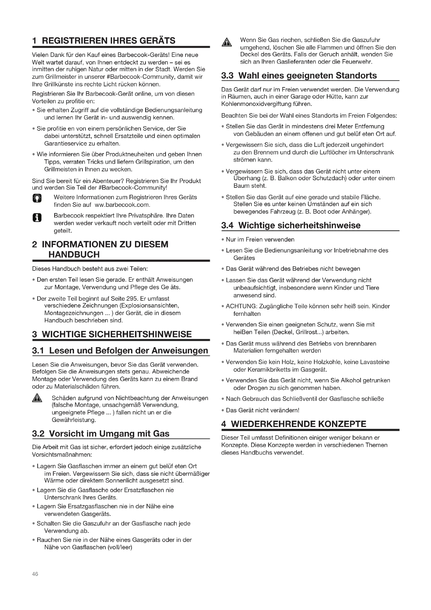 nach. Sie finden eine Lis e aller Referenznummem unter den Explosionsansichten im zweiten Teil dieses Handbuchs und auf www.barbecook.com. Wenn Sie Ihr Gerät online registriert haben, werden Sie automatisch auf die korrekte Ersatzteilliste geleitet in Ihrem MyBarbecook Konto. Sie haben da die Möglichkeit Ersatzteile online zu bestellen.