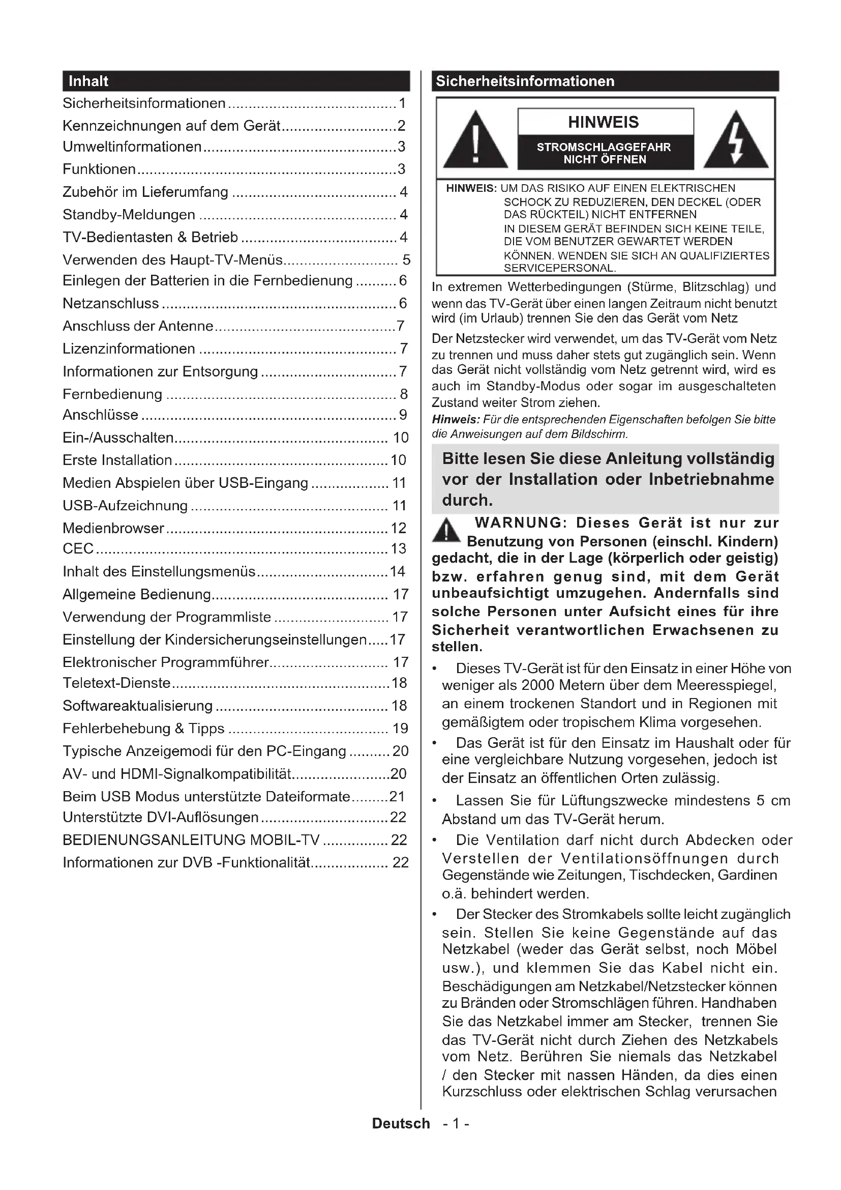 Bitte lesen Sie diese Anleitung vollständig vor der Installation oder Inbetriebnahme durch.